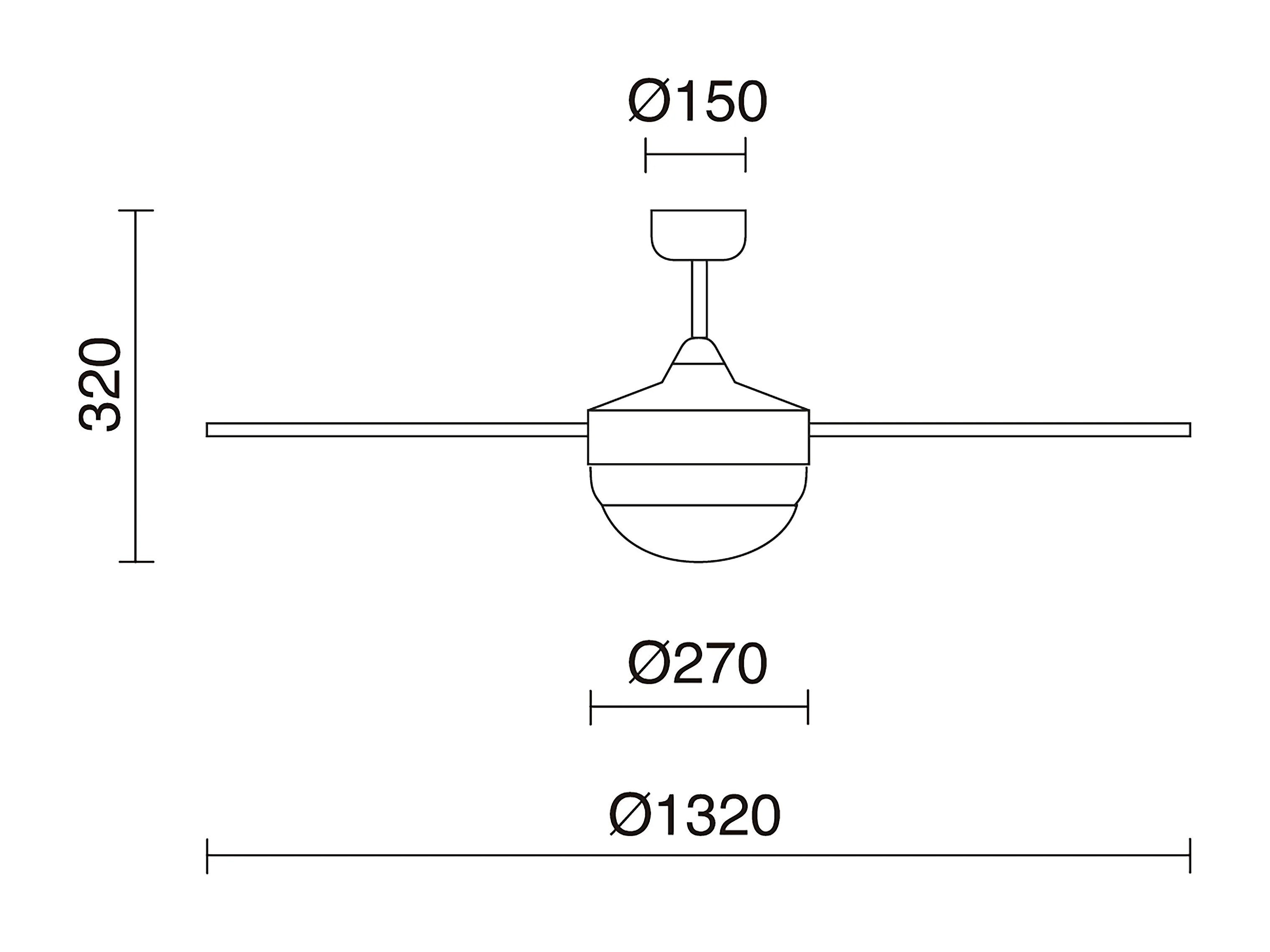 MISTRAL Deckenventilator im modernen Stil – Gleichstrommotor – 24 W SMD-LED – K Select – Fernbedienung – ohne Licht – 3 Flügel – ø132 cm – Stahl und Holz – Schwarz