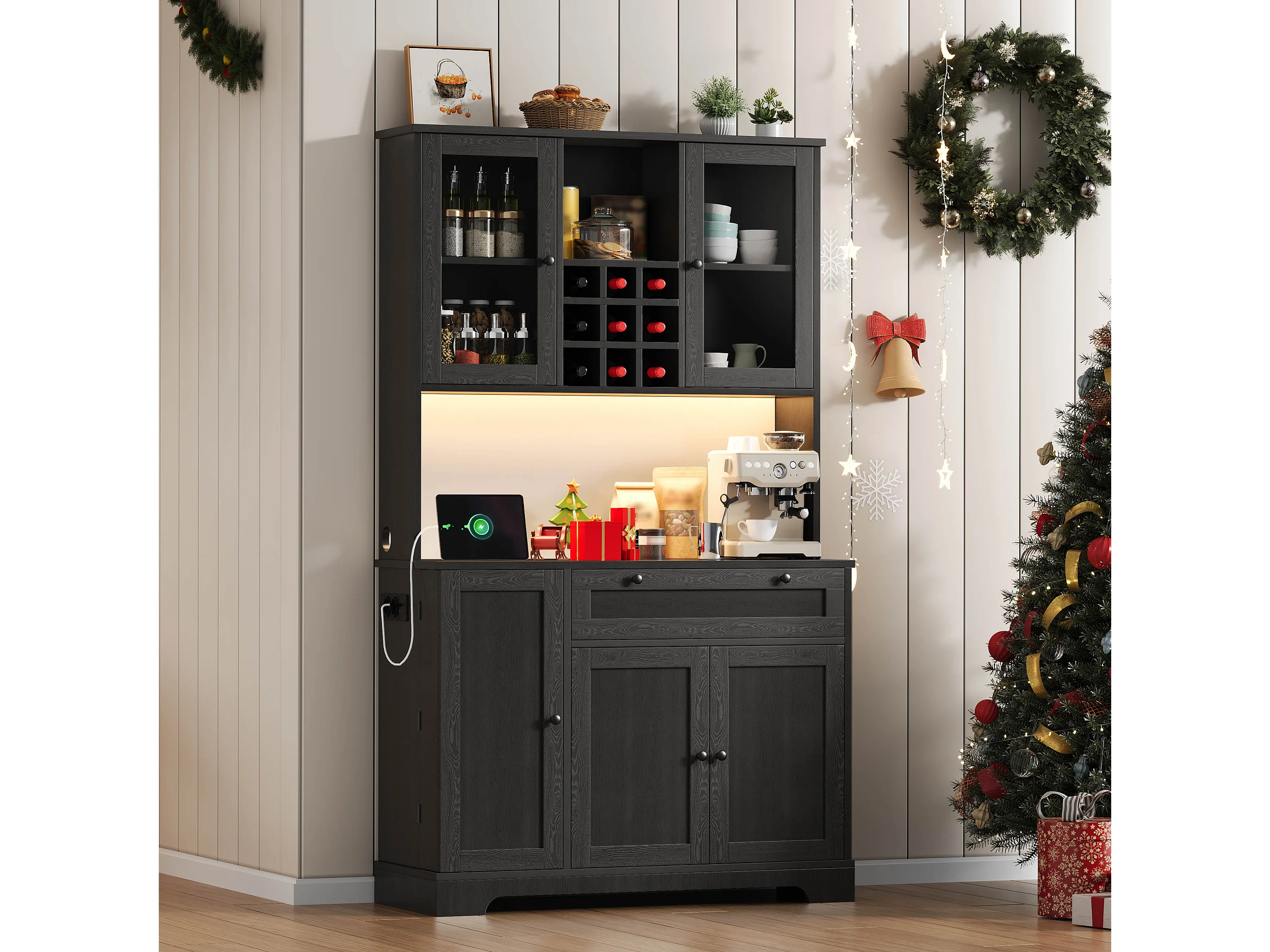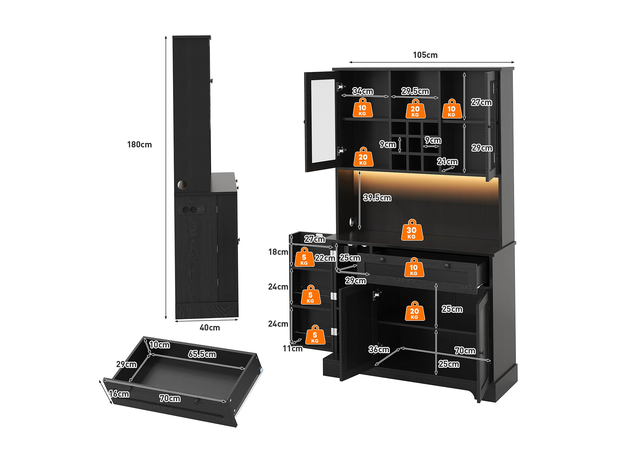 Modernes Küchenbuffet 100x40x180cm - mit Steckdose und LED - mit 1 Schublade und 5 Türen - mit Gewürzregal - Schwarz