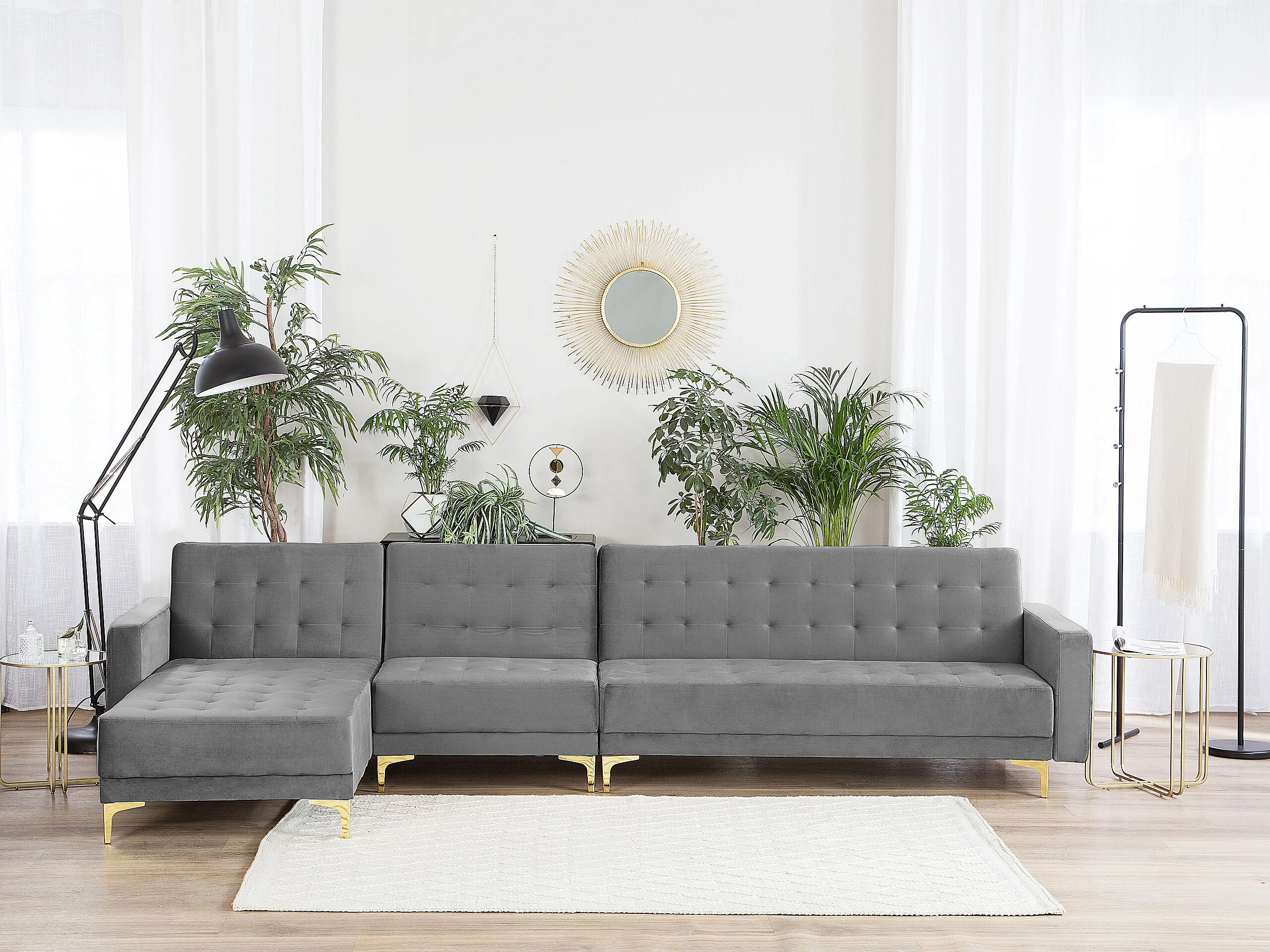 Modulsofa Samtstoff Schlaffunktion grau rechtsseitig Aberdeen