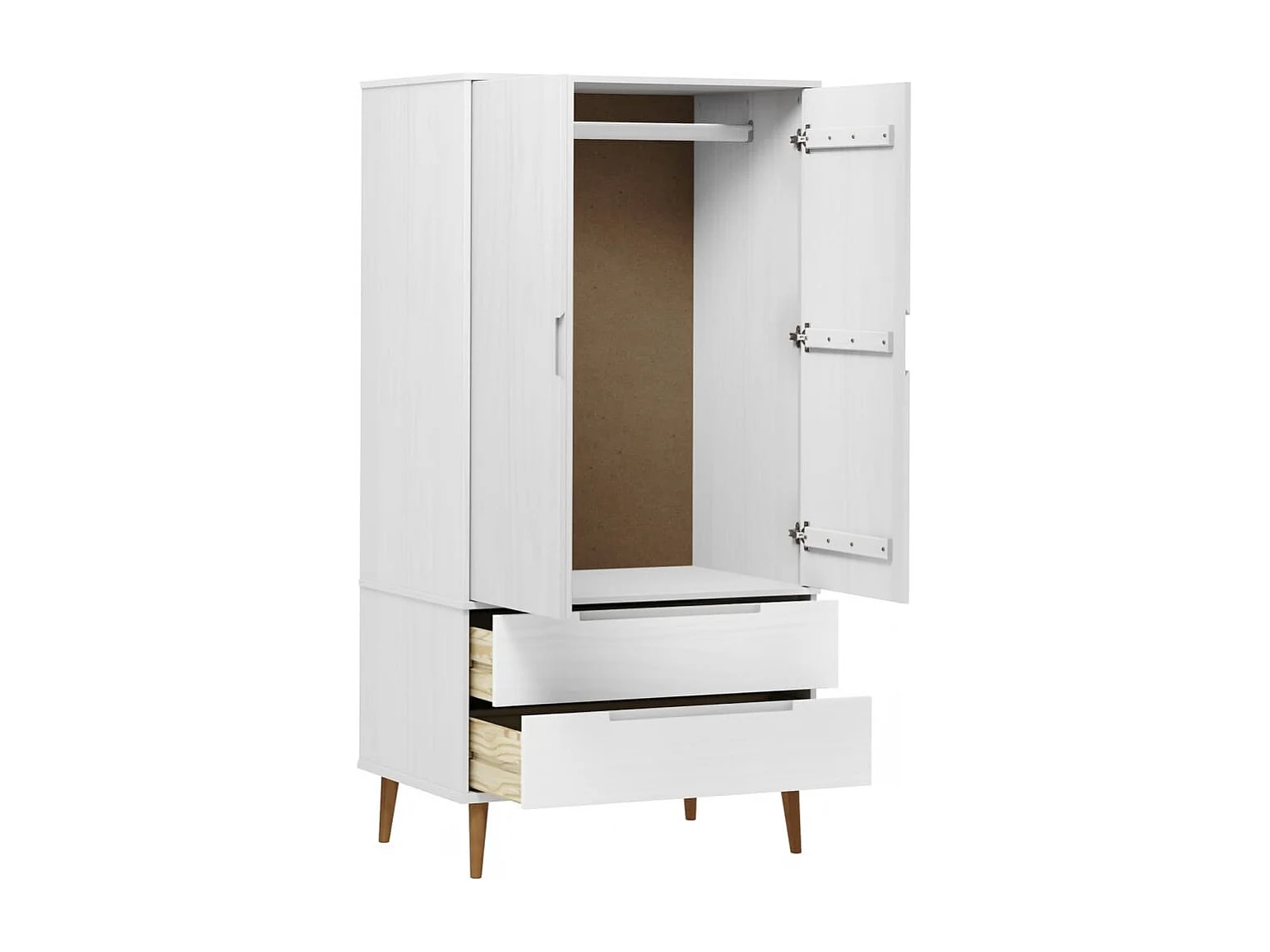MOLDE Kleiderschrank Weiß 90x55x175 cm Massivholz Kiefer