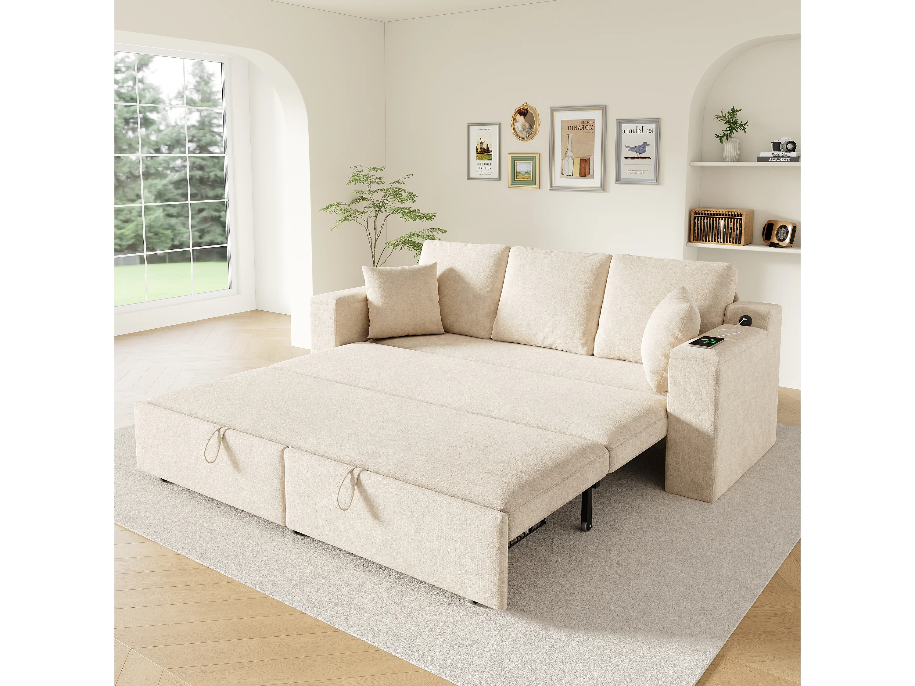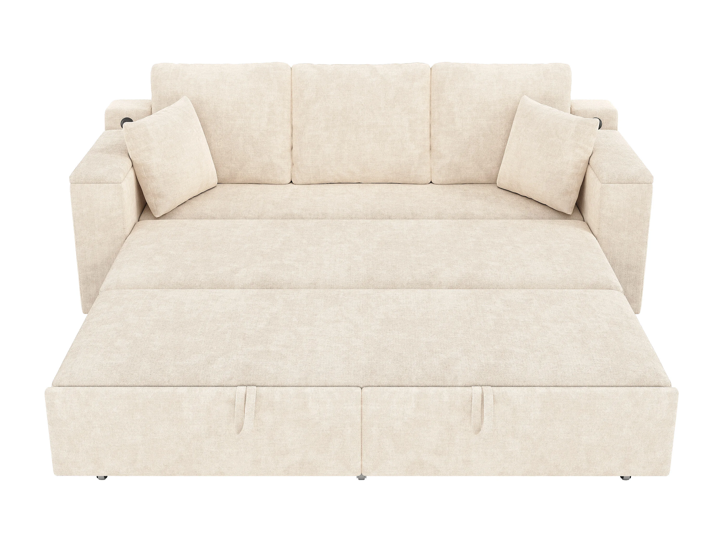 Multifunktions-Sofa 3 in 1 - 3 Personen - mit Stauraum - mit USB-Ladeanschluss - Chenille-Stoff - Beige