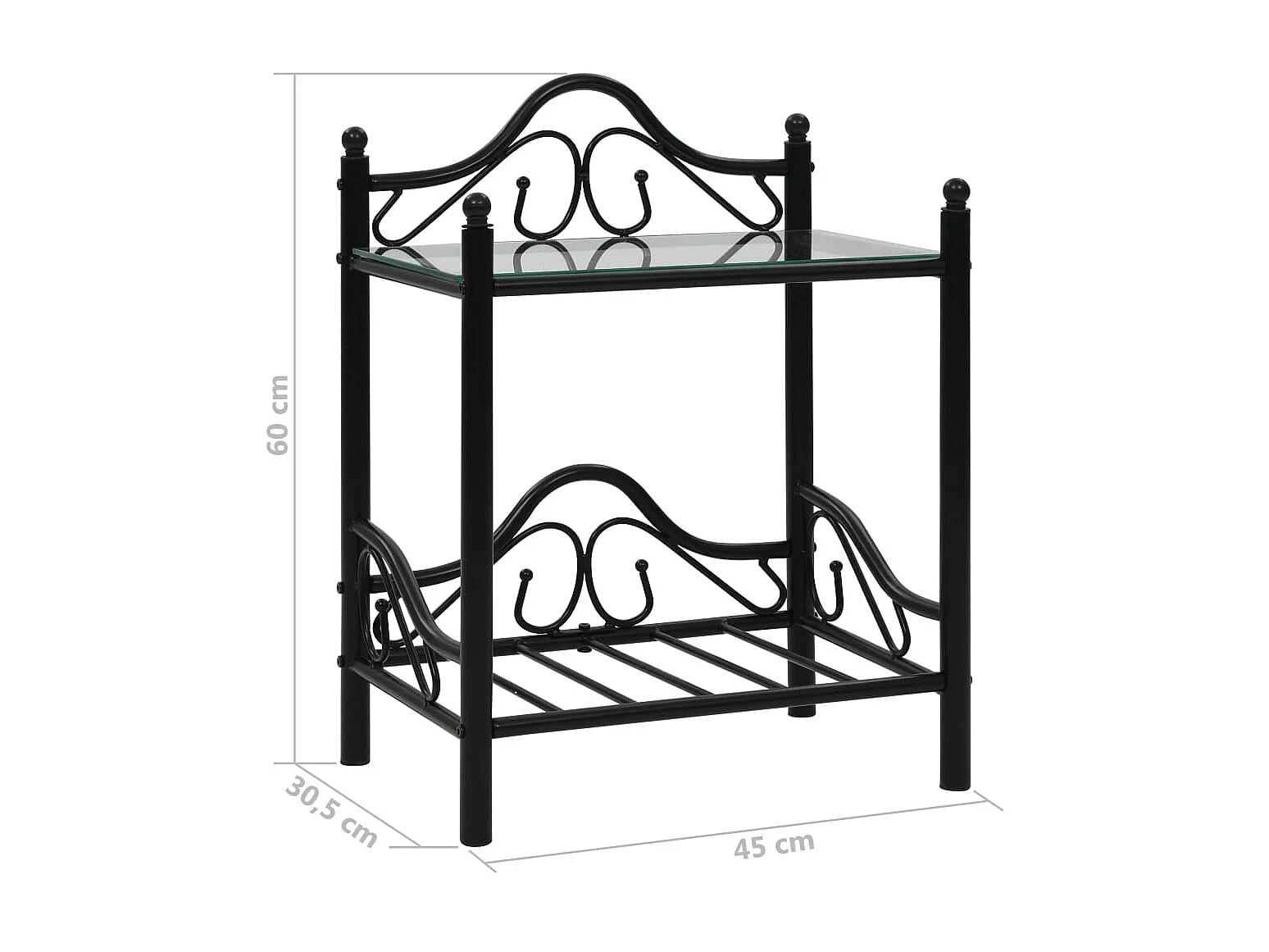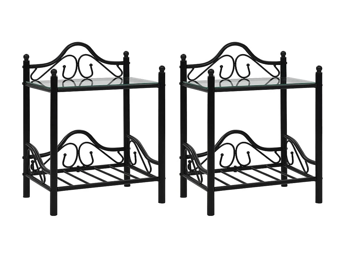 Nachttisch 2 Stk. Stahl und gehärtetes Glas 45x30,5x60 cm Schwarz