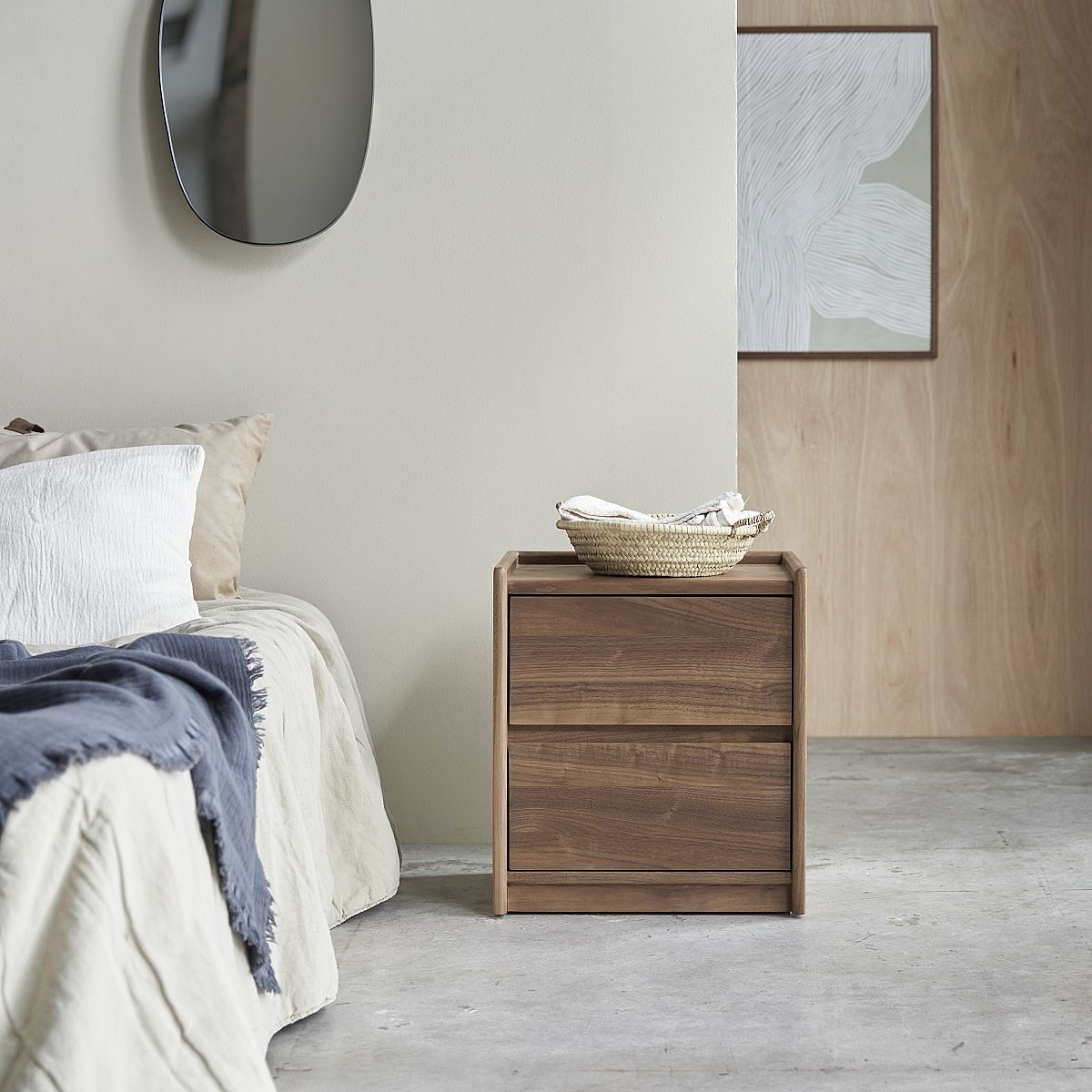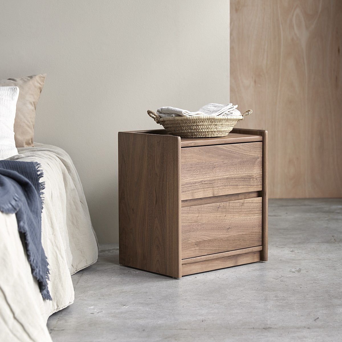 Nachttisch Arto aus massivem Nussbaumholz mit zwei Schubladen