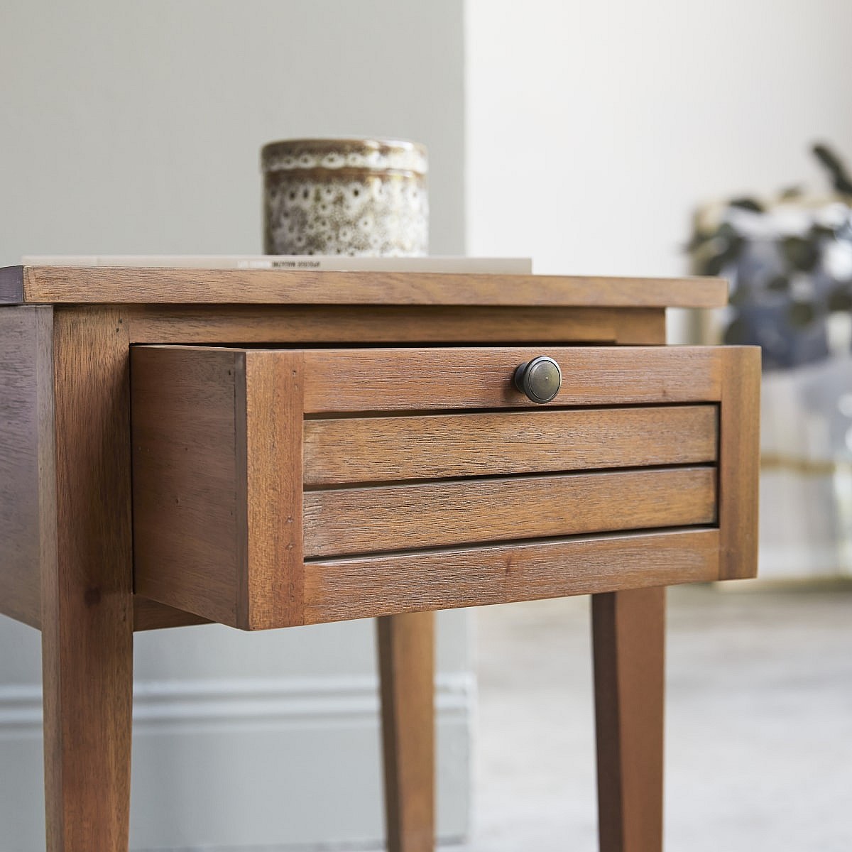 Nachttisch Arto aus massivem Nussbaumholz mit einer Schublade