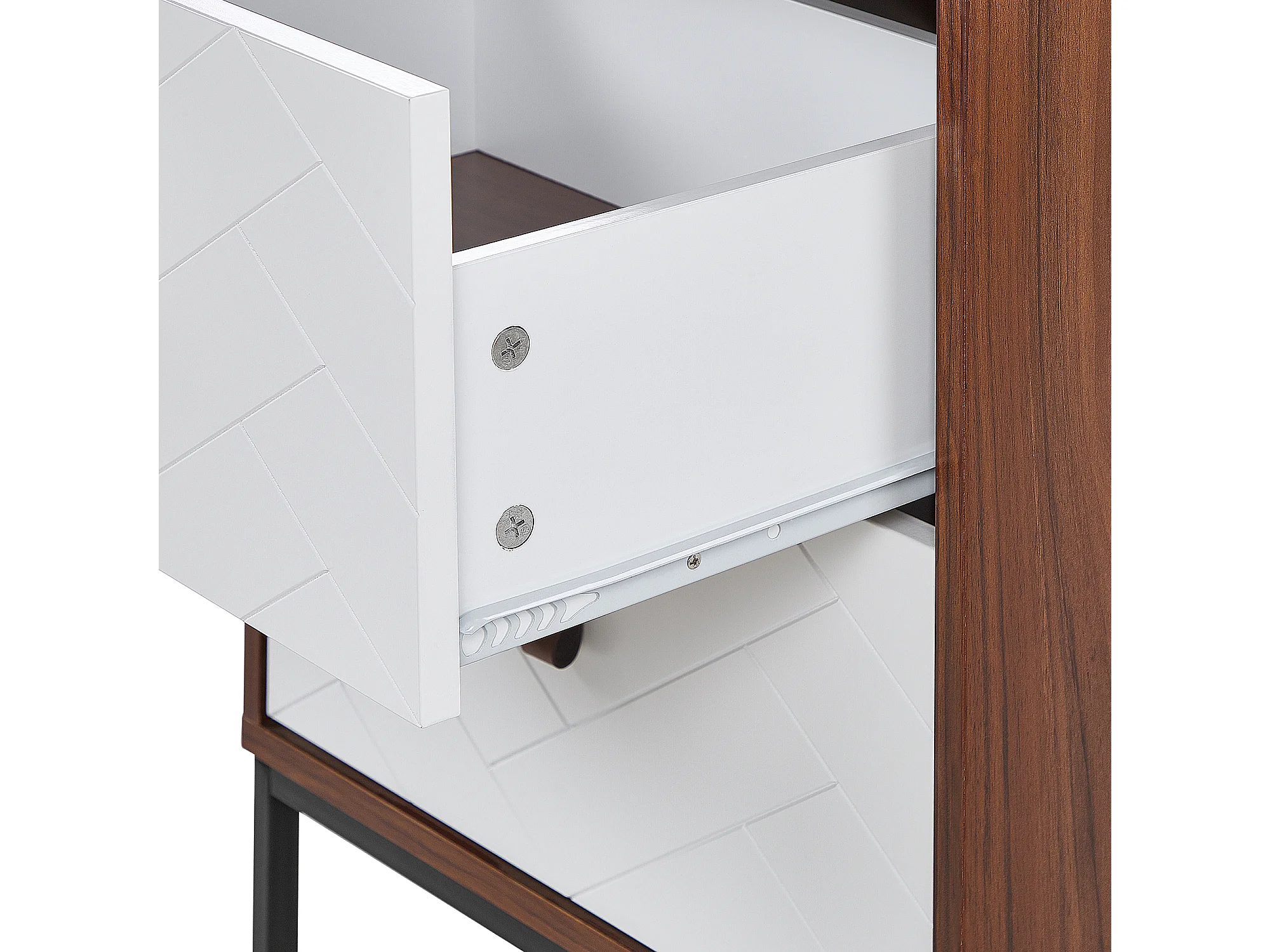 Moderner Nachttisch dunkler Holzfarbton / weiss 2 Schubladen Nueva