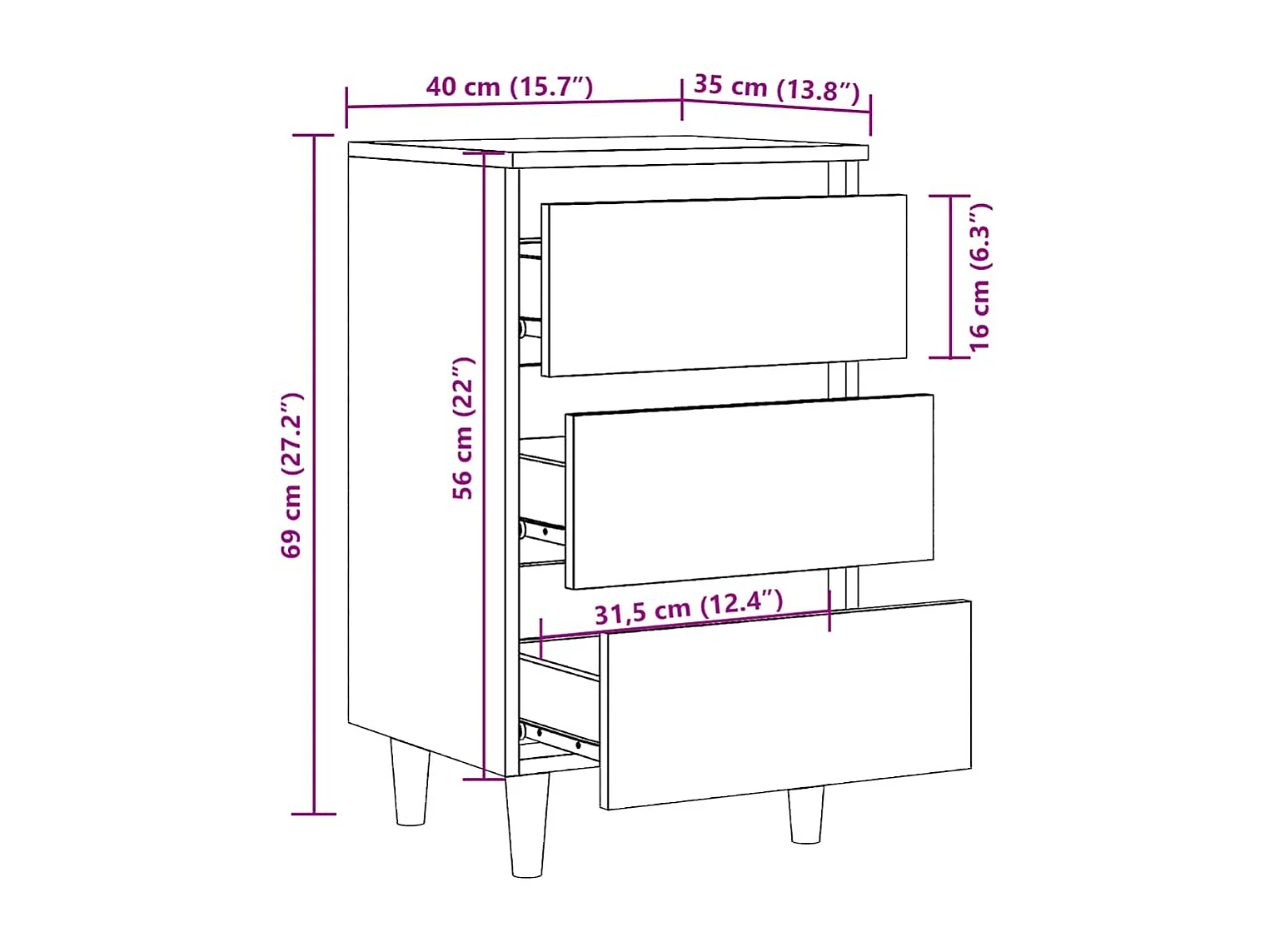 Nachttisch mit Massivholzbeinen Räuchereiche 40x35x69cm