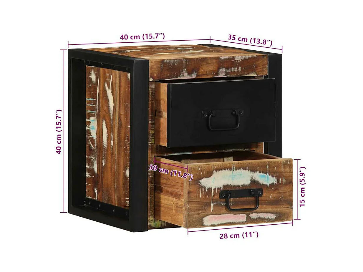 Nachttisch Mehrfarbig 40x35x25 cm Altholz Massivholz