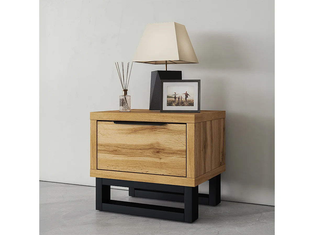Nachttisch mit 1 Schublade Eden Holz und Schwarz