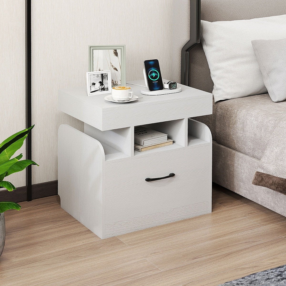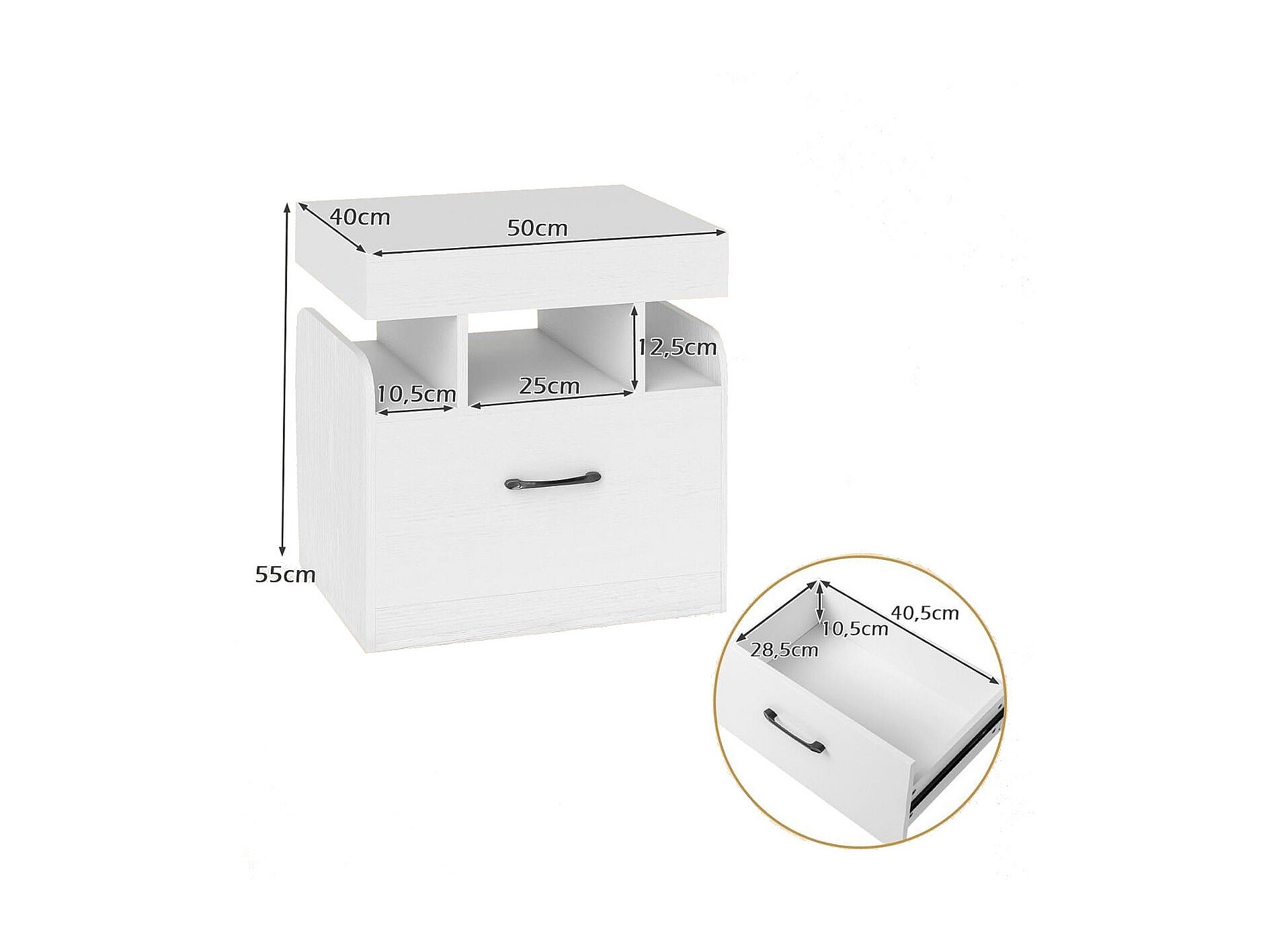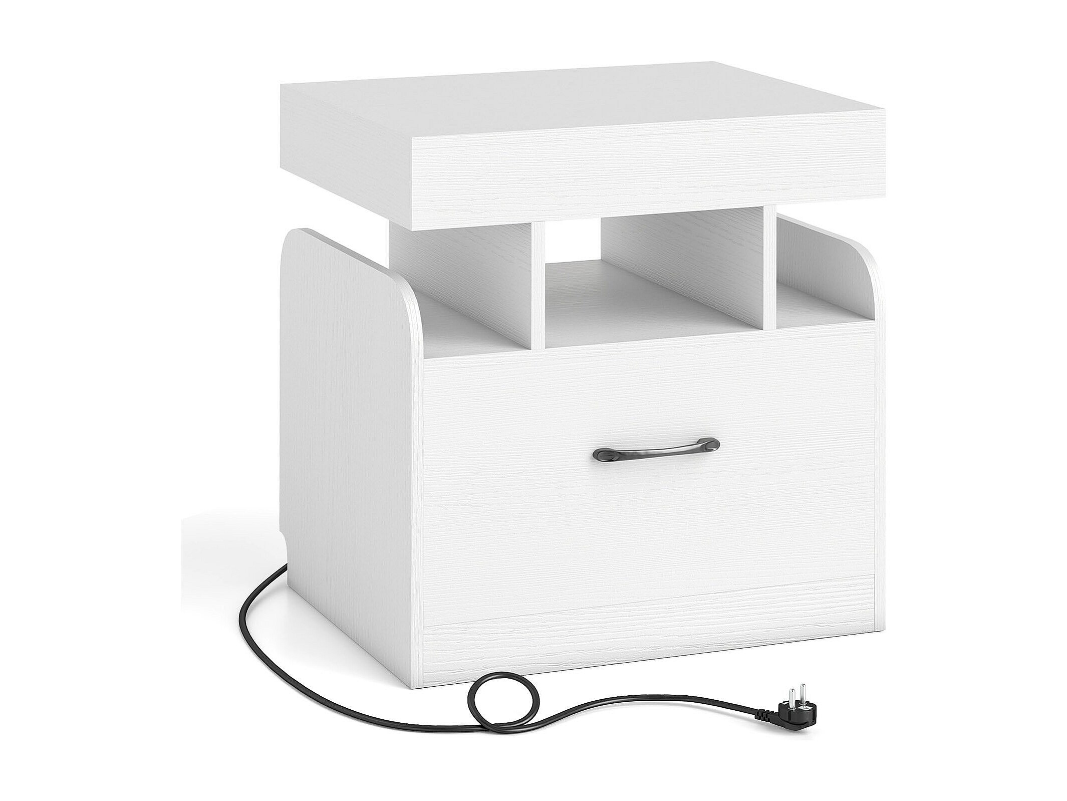 Nachttisch mit Ladestation Beistelltisch mit Schublade Nachtschrank mit offenen Fächern 50 x 40 x 55 cm Weiß