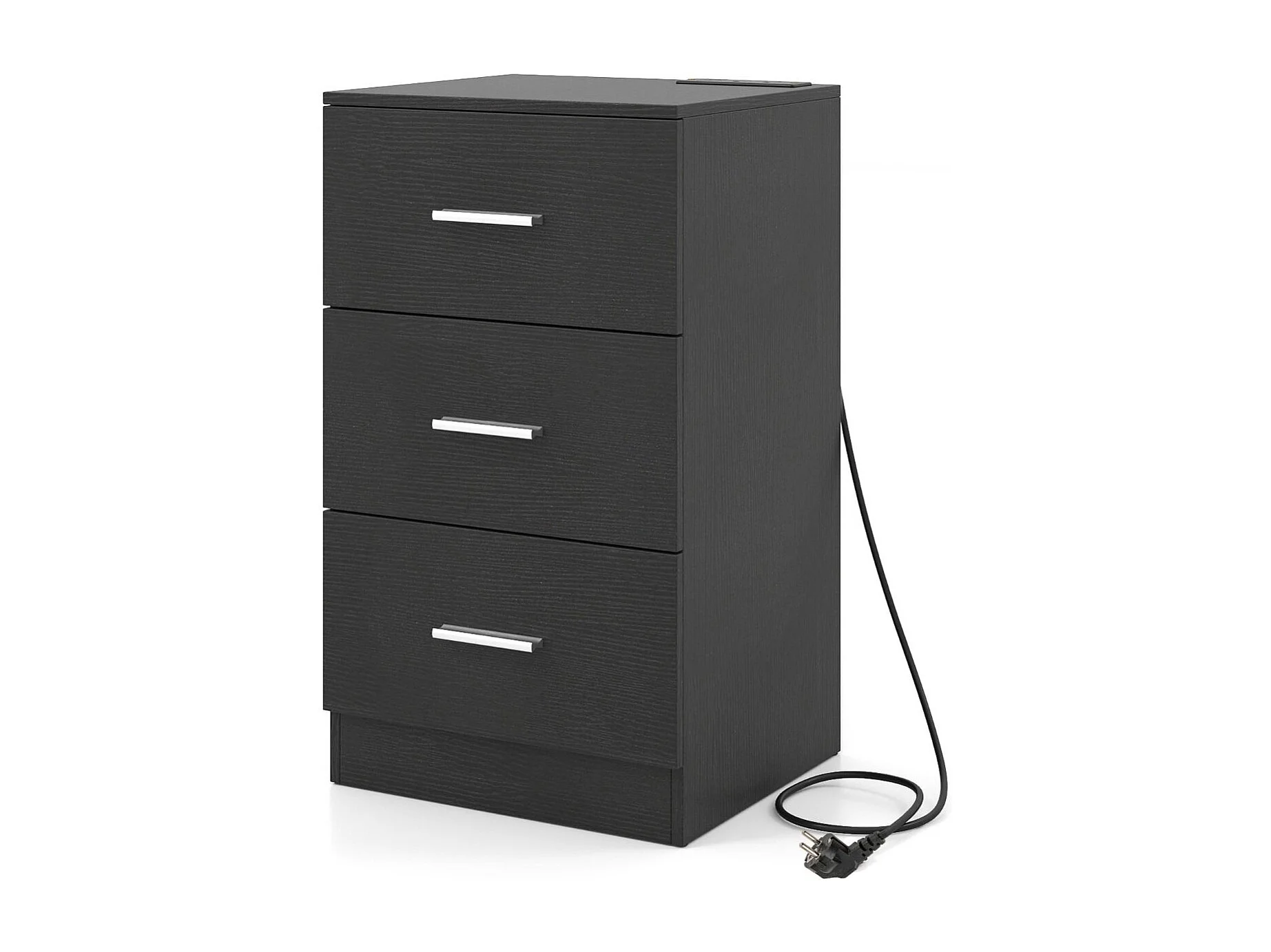 Nachttisch mit Ladestation moderner Nachtschrank mit 3 Aufbewahrungsschubladen Schwarz 38 x 35 x 66 cm