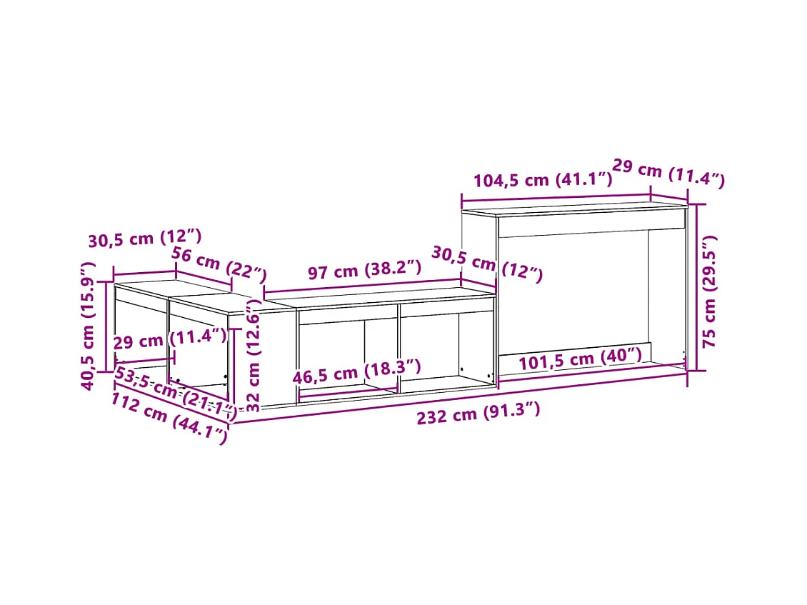 Nachttisch mit Schreibtisch 232x112x75 cm Massivholz Kiefer