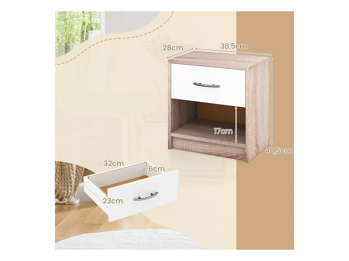Nachttisch mit Schublade Kleiner Beistelltisch mit offenem Fach 38,5 x 28 x 40,5 cm Natur + Weiß