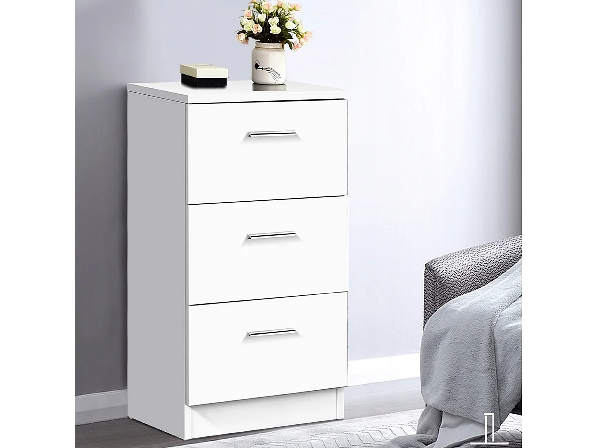Nachttisch Nachtschrank Schubladenkommode mit 3 Schubkästen Spanplatte 38 x 67 x 35cm Weiß/Schwarz-Weiß