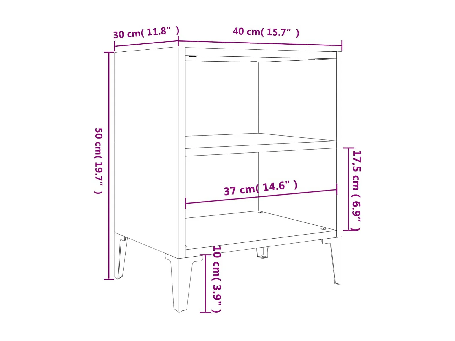 Nachttische 2 Stk. Metallbeine Braun Eichen-Optik 40x30x50 cm