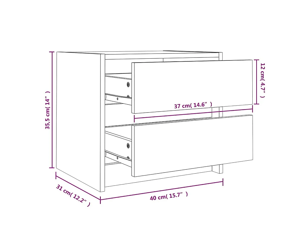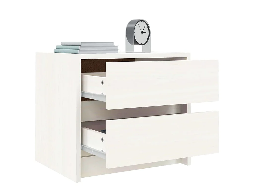 Nachttische 2 Stk. Weiß 40x31x35,5 cm Massivholz Kiefer