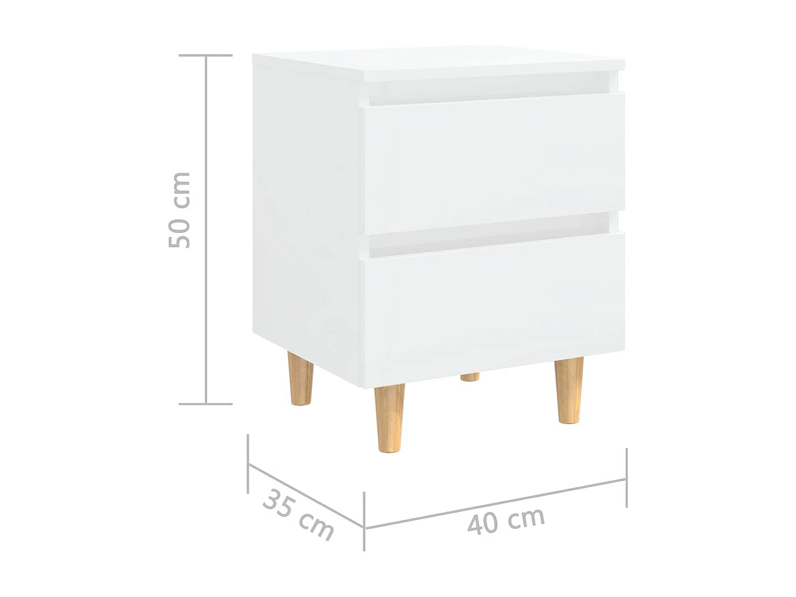 Nachttische Kiefernbeine 2 Stück Weißglanz 40x35x50 cm
