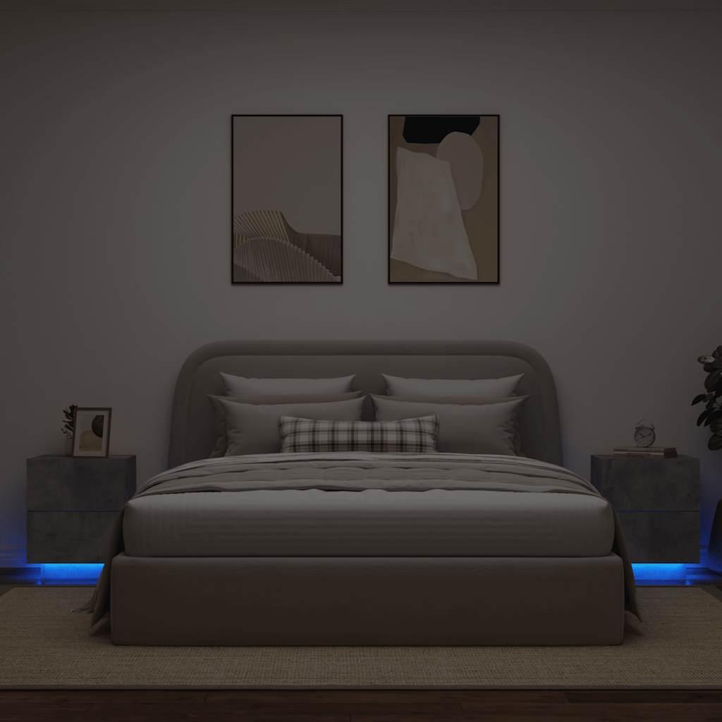 Nachttische mit LED-Leuchten 2 Stk. Betongrau Holzwerkstoff