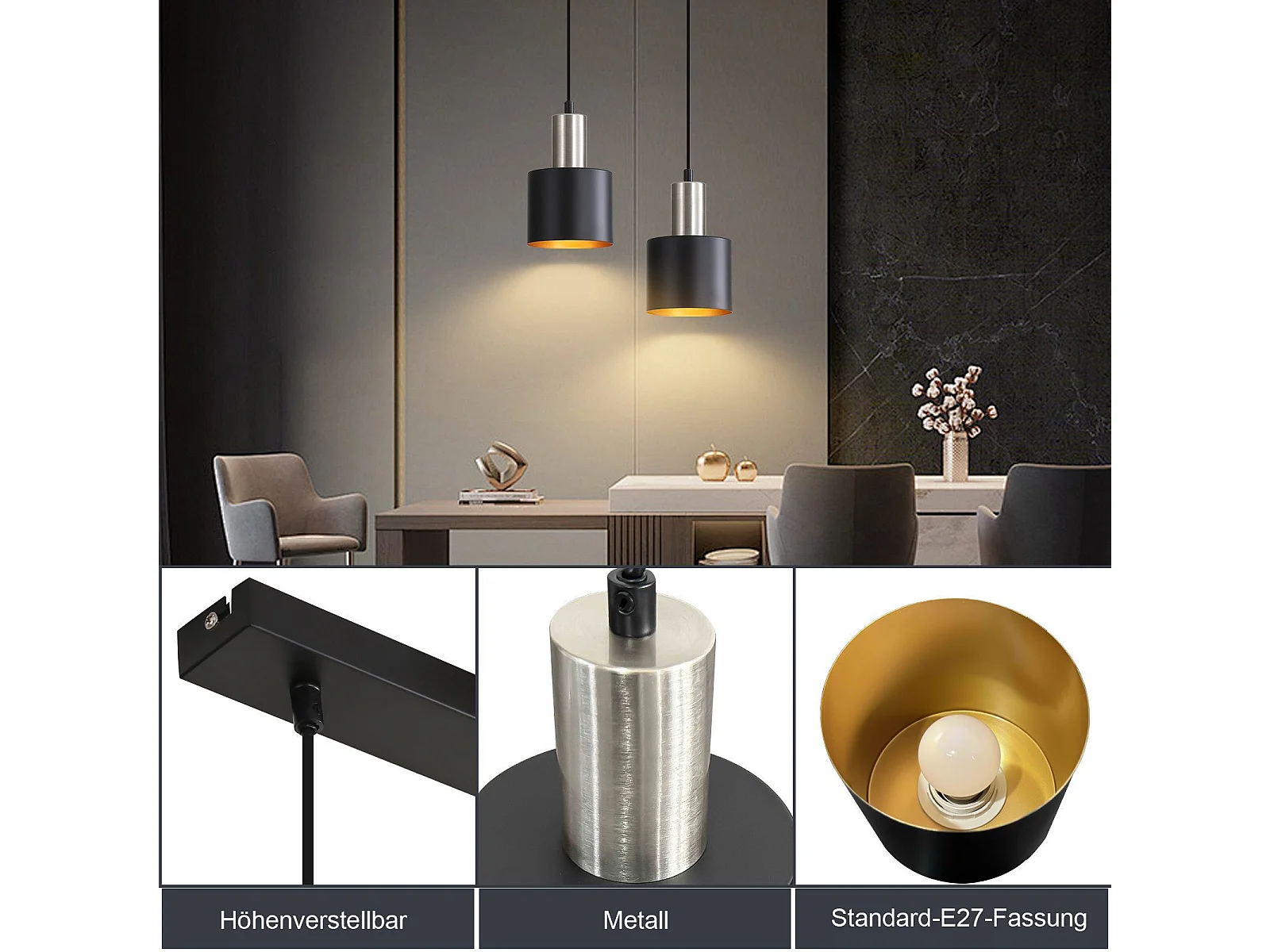 NETTLIFE Esstisch Pendelleuchte E27 Vintage Hängelampe 2-flammig Schwarz Gold