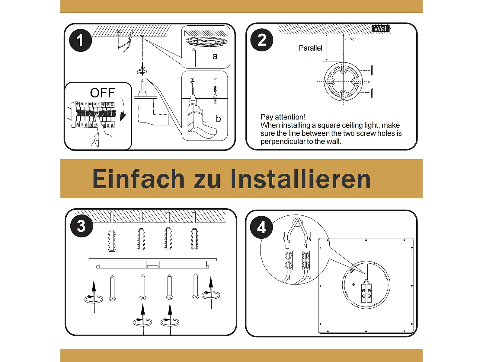 NETTLIFE 23 cm 3000 18 W quadratische LED-Deckenleuchte für Schlafzimmer, Weiß, integrierte LED