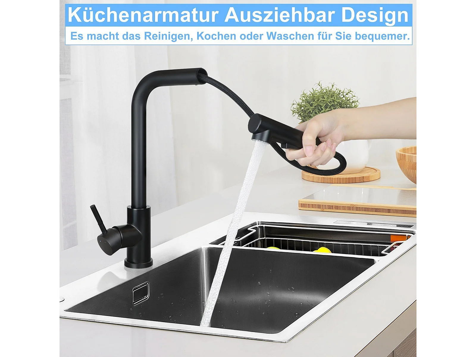 NETTLIFE Waschtischarmatur Waschbeckenarmatur ausziehbar 360° drehbar aus Edelstahl mit 2 Strahlarten