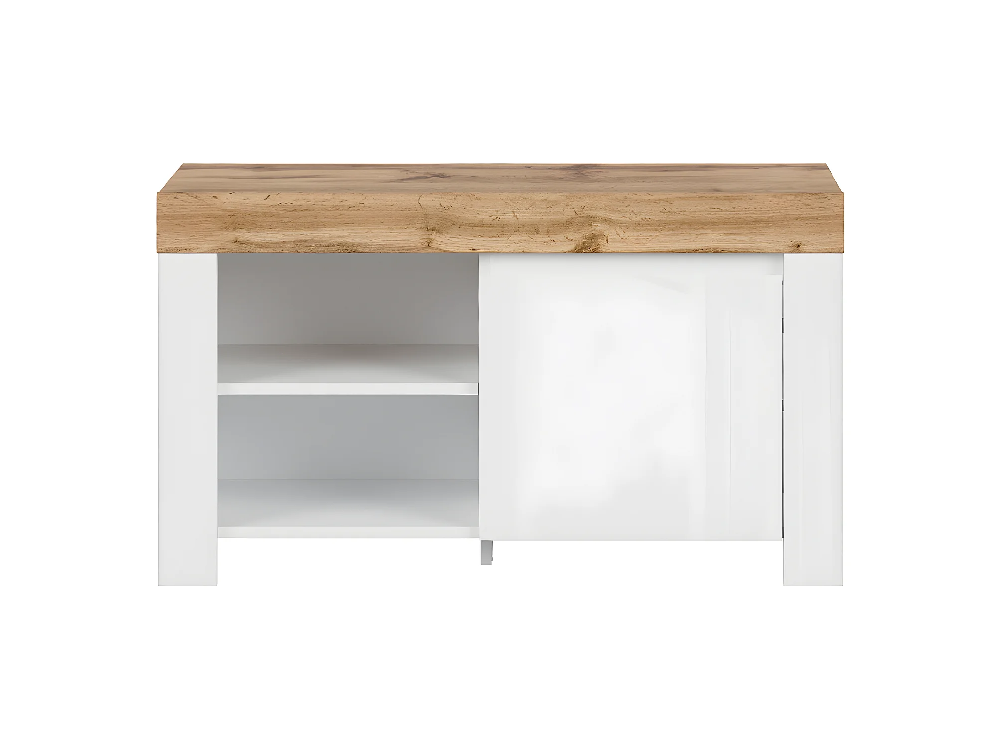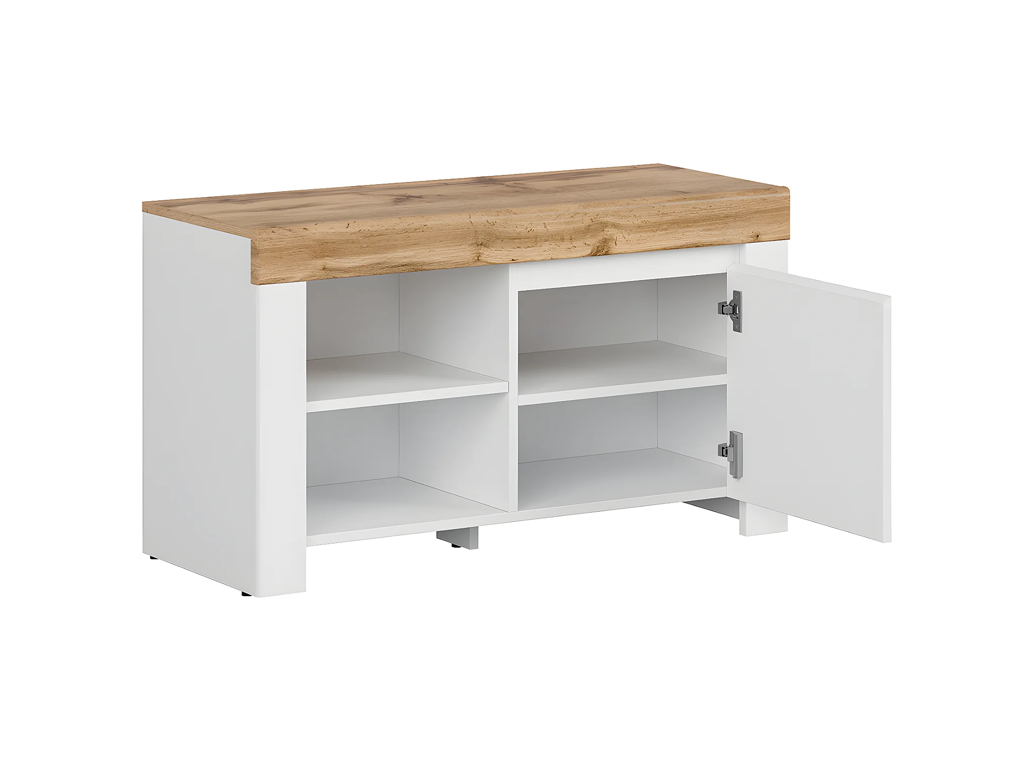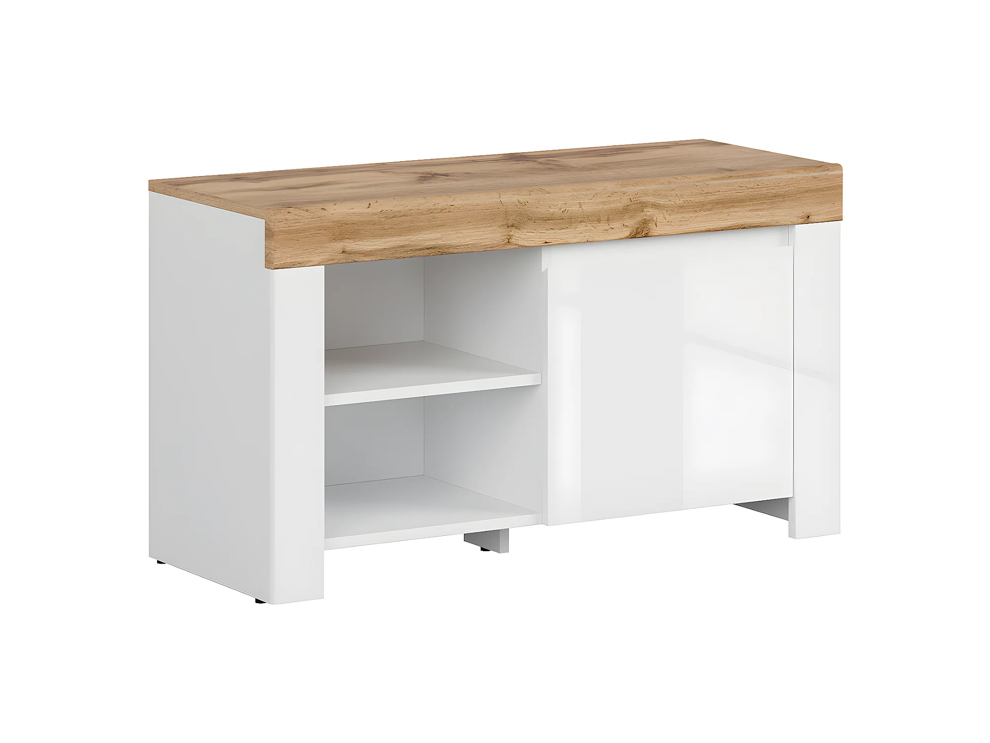 Niedriges Schuhmöbel Hella Weiß und Holz