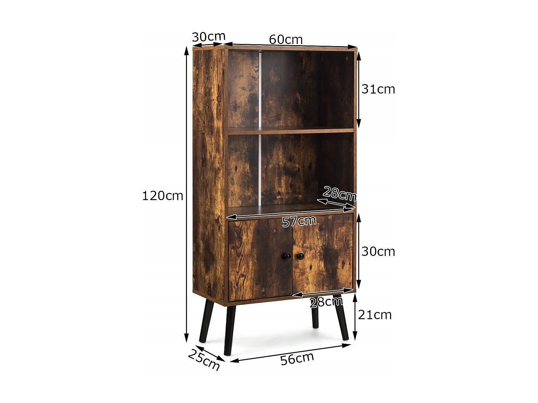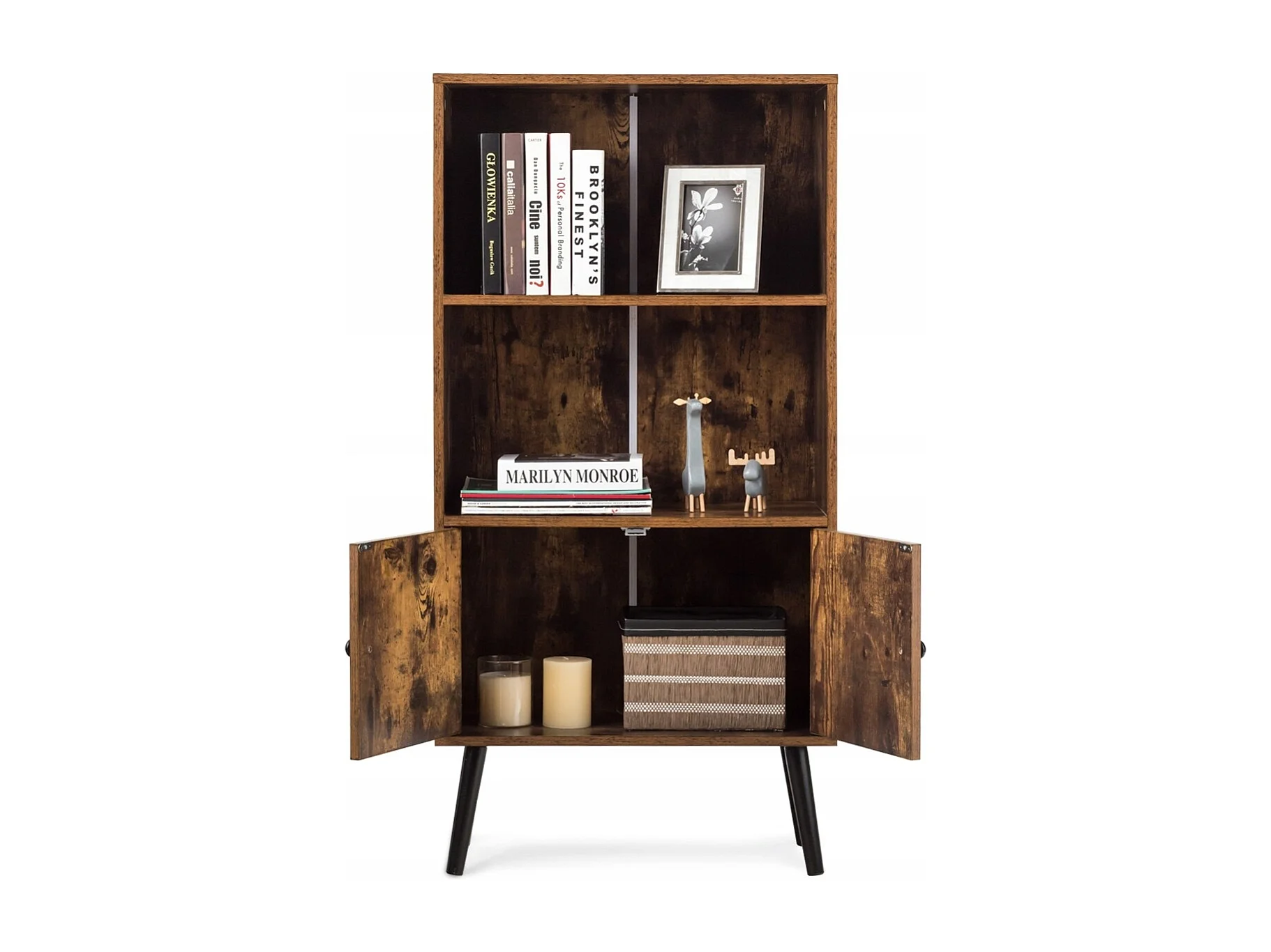 Nostalgie Bücherregal mit 3 Regalbrettern & 2 Türen & Soliden Holzbeinen für Wohnzimmer Büro Braun