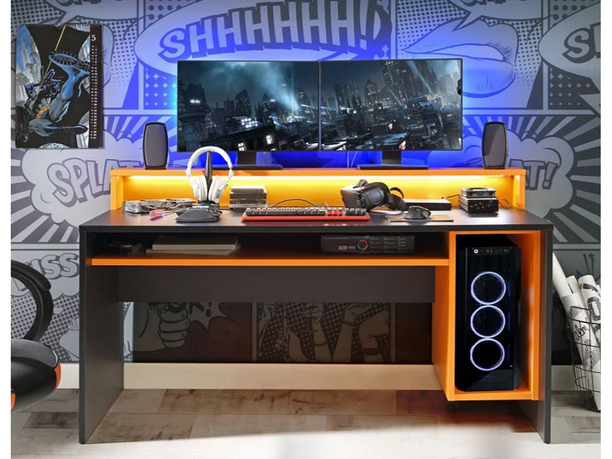 Gaming-Stuhl mit Fußstütze Schwarzes und orangefarbenes Kunstleder