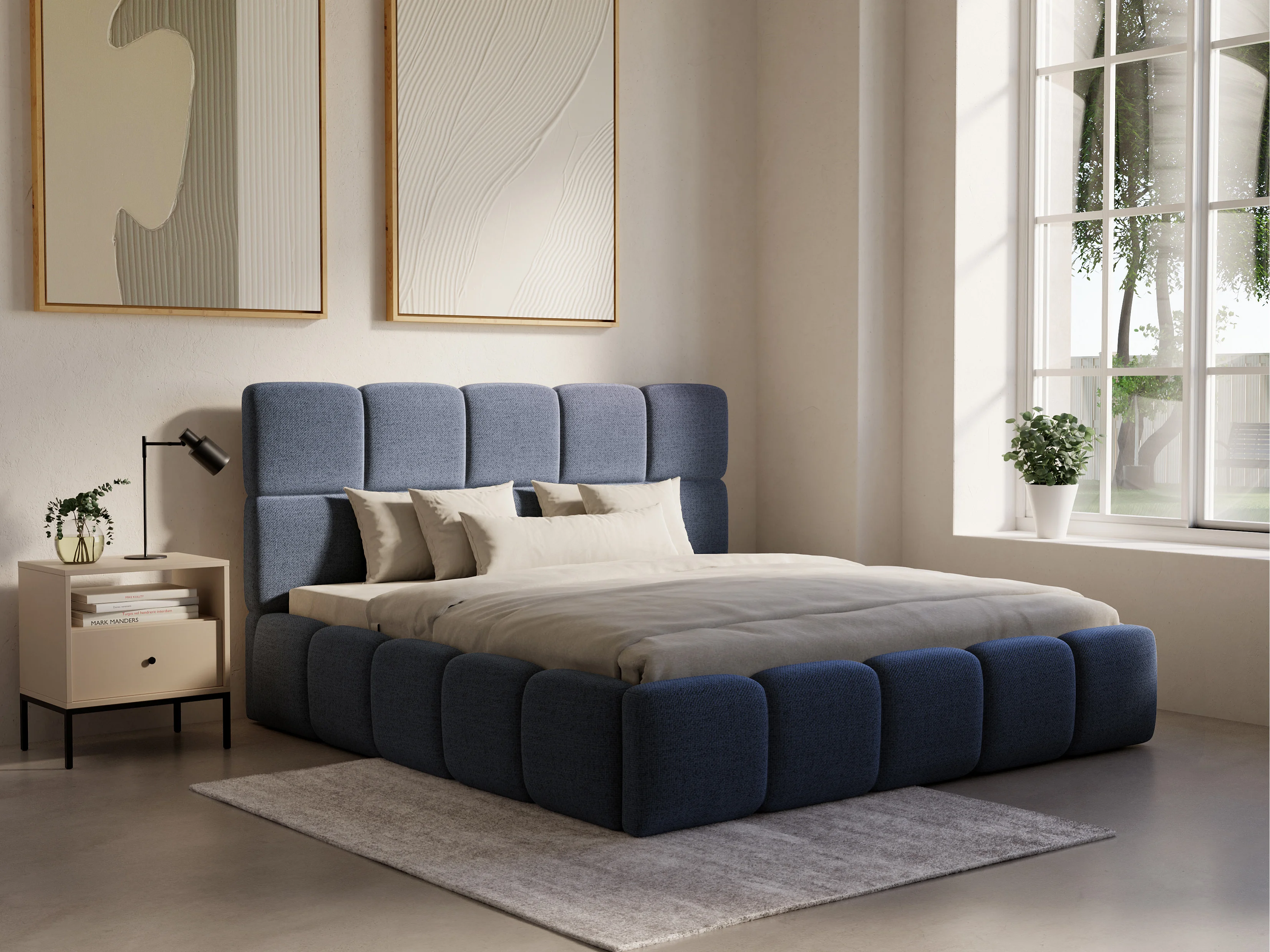 Bett mit Bettkasten - 180 x 200 cm - Strukturstoff - Dunkelblau - DAMADO von Pascal Morabito