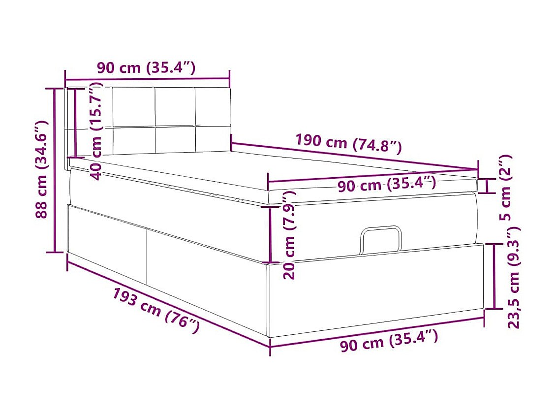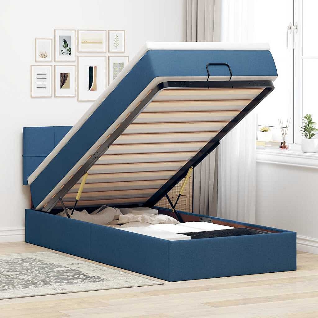 Ottoman-Bett mit Matratze Blau 90x190 cm Stoff