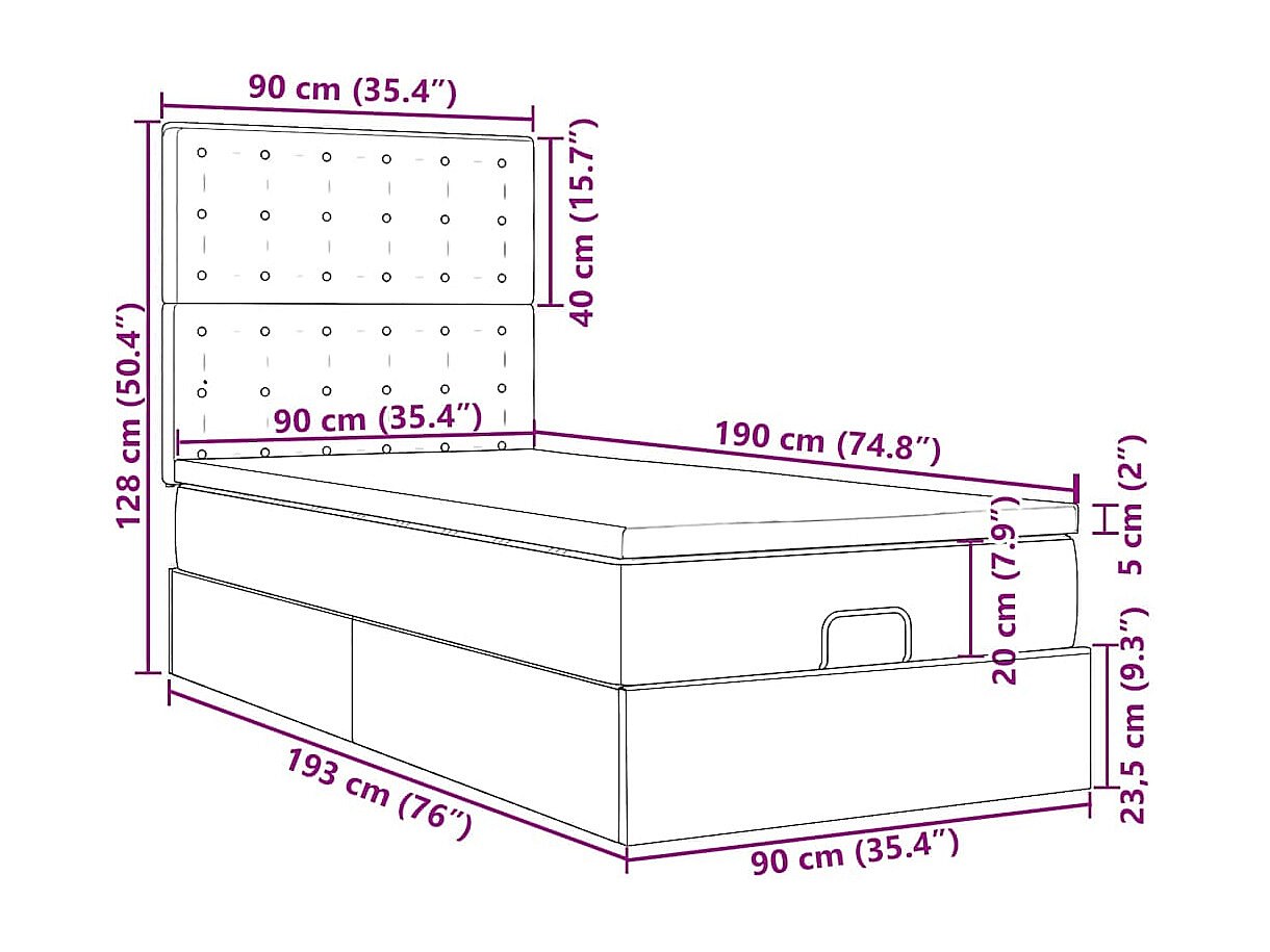 Ottoman-Bett mit Matratze Blau 90x190 cm Stoff