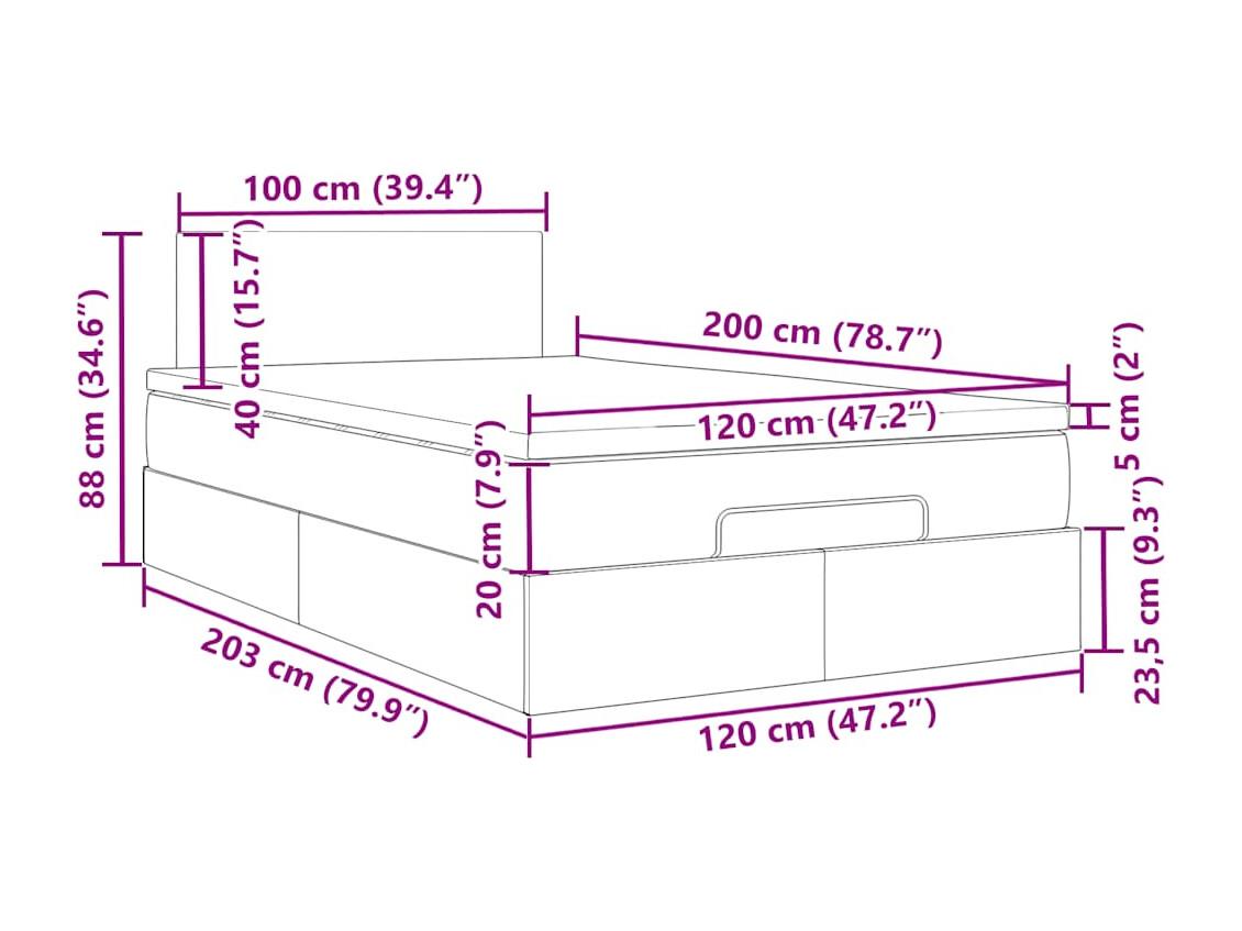 Ottoman-Bett mit Matratze Dunkelgrau 120x200 cm Stoff