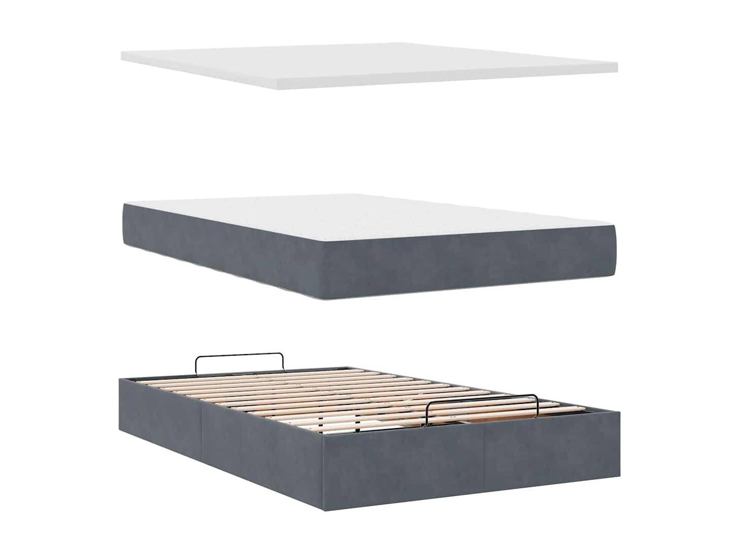Ottoman-Bett mit Matratze Dunkelgrau 120x200 cm Samt