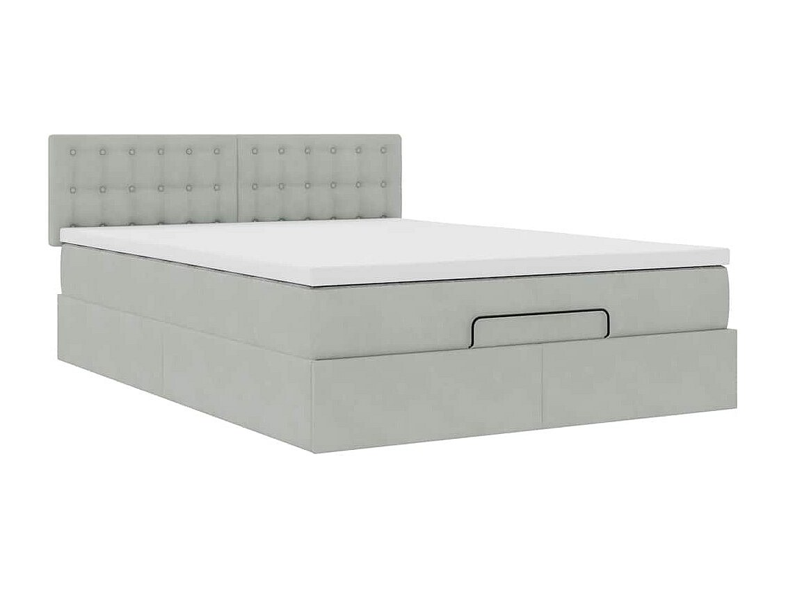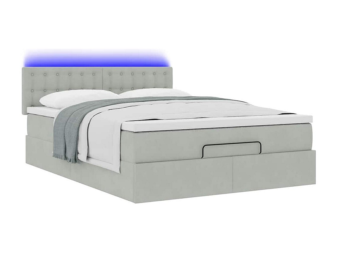 Ottoman-Bett mit Matratze & LEDs Hellgrau 140x190 cm Samt