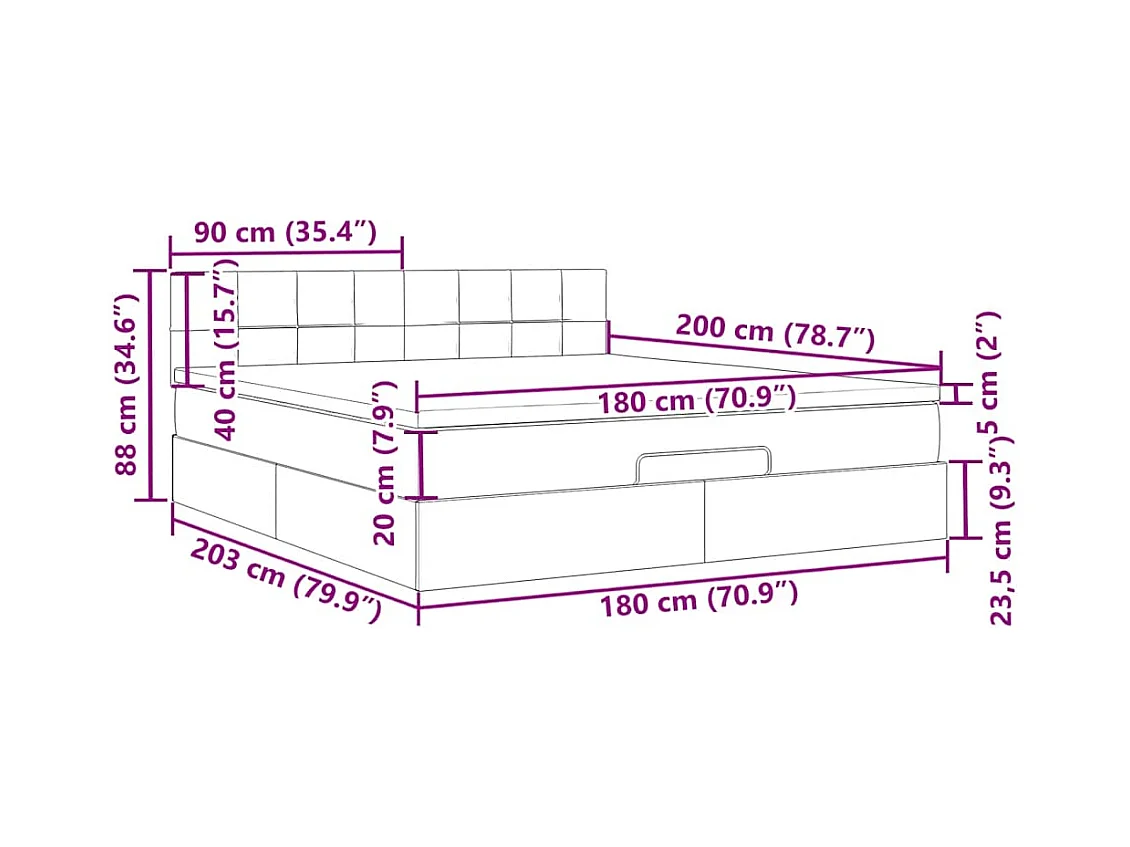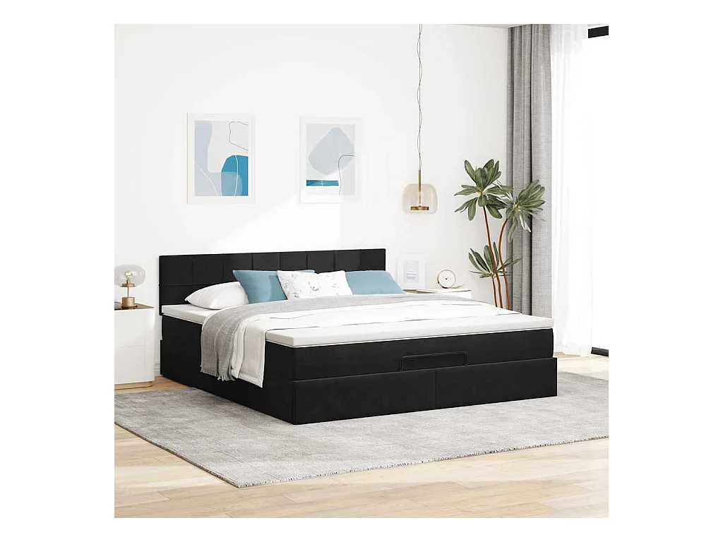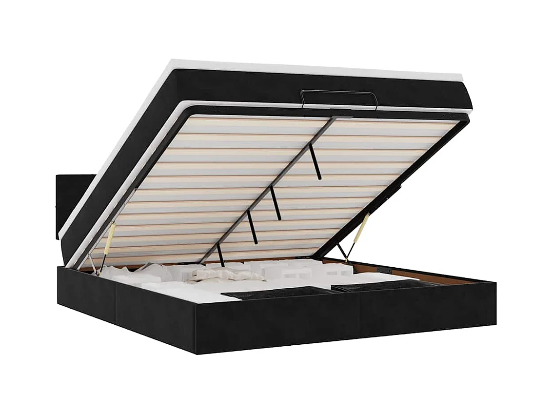 Ottoman-Bett mit Matratze & LEDs Schwarz 180x200 cm Samt