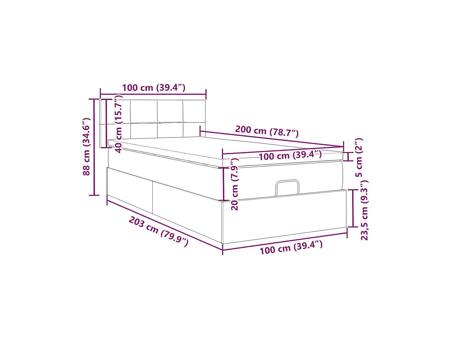 Ottoman-Bett mit Matratze Taupe 100x200 cm Stoff