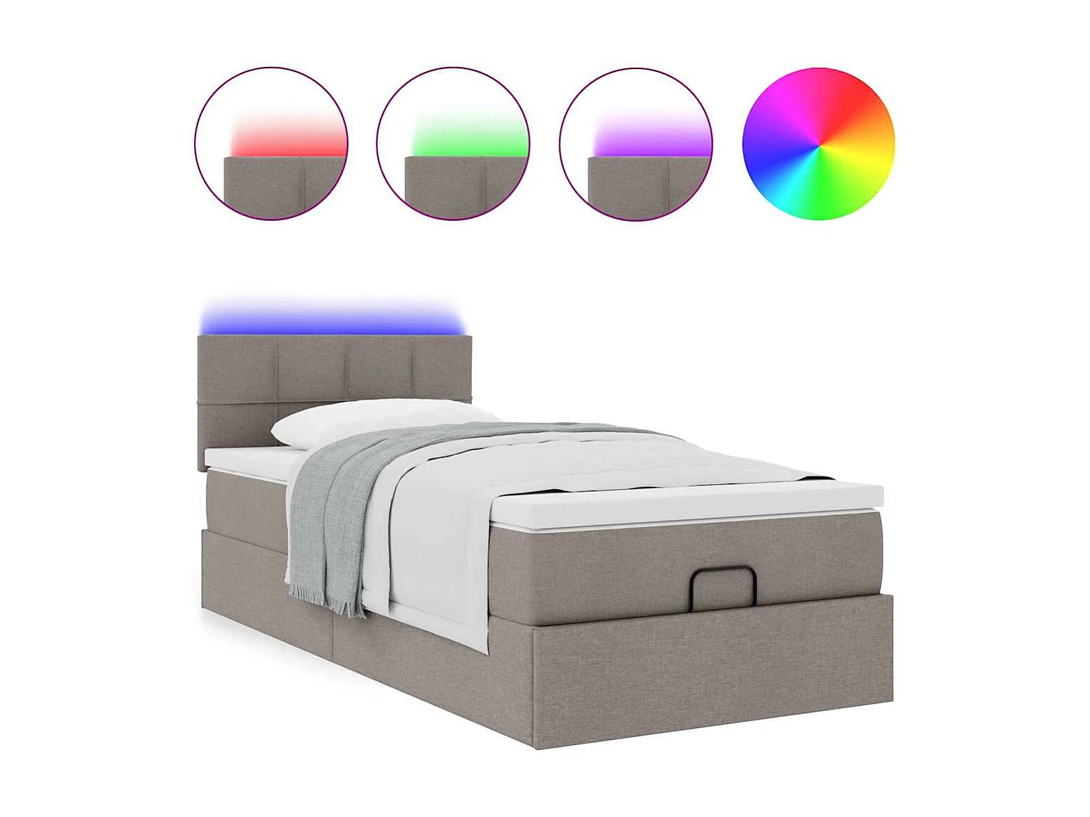 Ottoman-Bett mit Matratze & LEDs Taupe 100x200 cm Stoff
