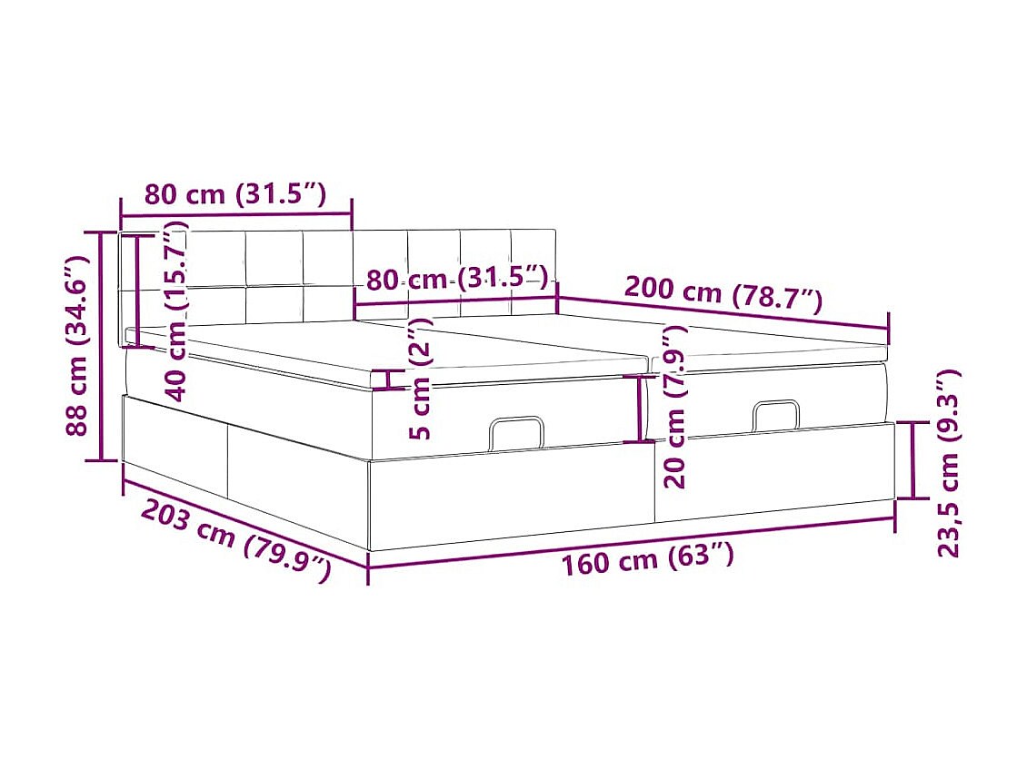Ottoman-Bett mit Matratzen Dunkelgrau 160x200 cm Stoff
