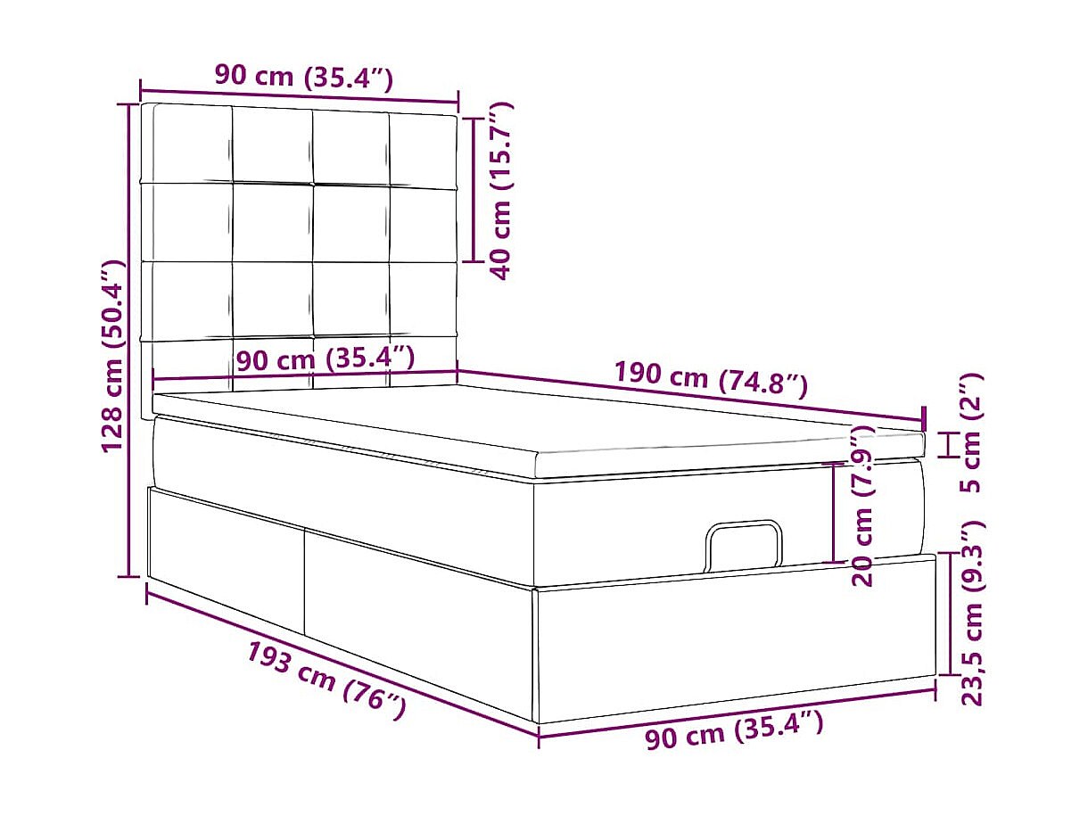Ottoman-Bett mit Matratzen Dunkelgrau 90x190 cm Samt