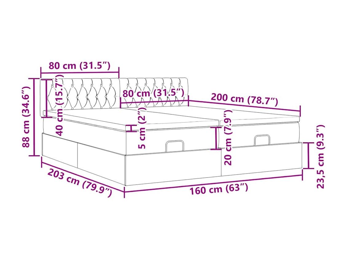 Ottoman-Bett mit Matratze Dunkelgrau 160x200 cm Stoff