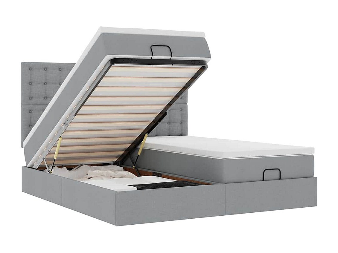 Ottoman-Bett mit Matratzen Hellgrau 160x200 cm Stoff