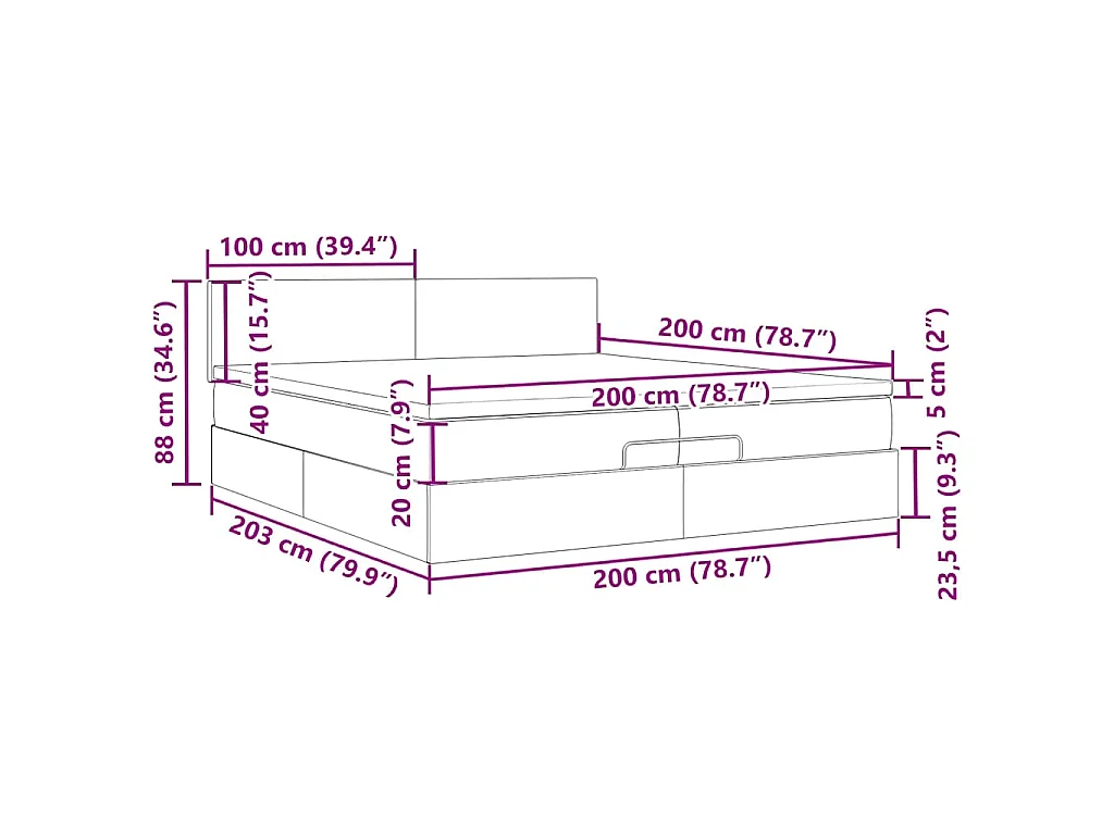 Ottoman-Bett mit Matratzen & LEDs Blau 200x200 cm Stoff