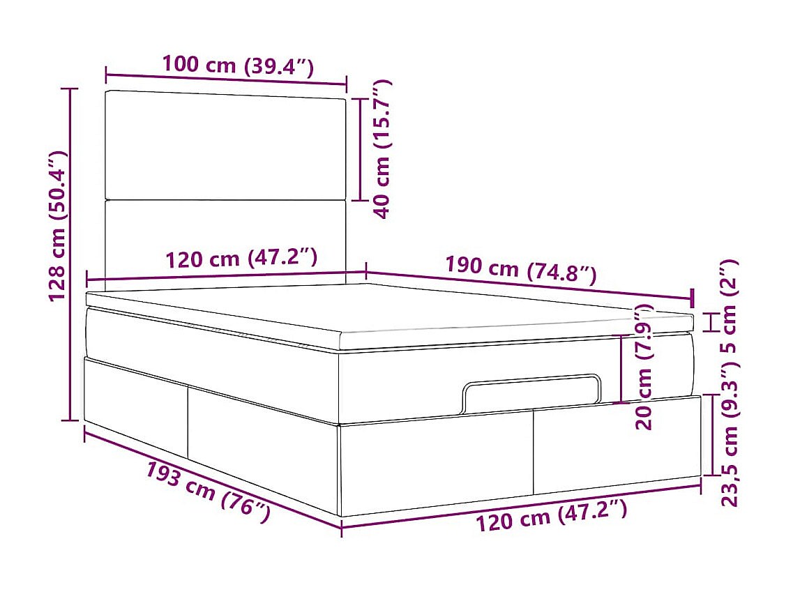 Ottoman-Bett mit Matratzen & LEDs Dunkelblau 120x190 cm Samt