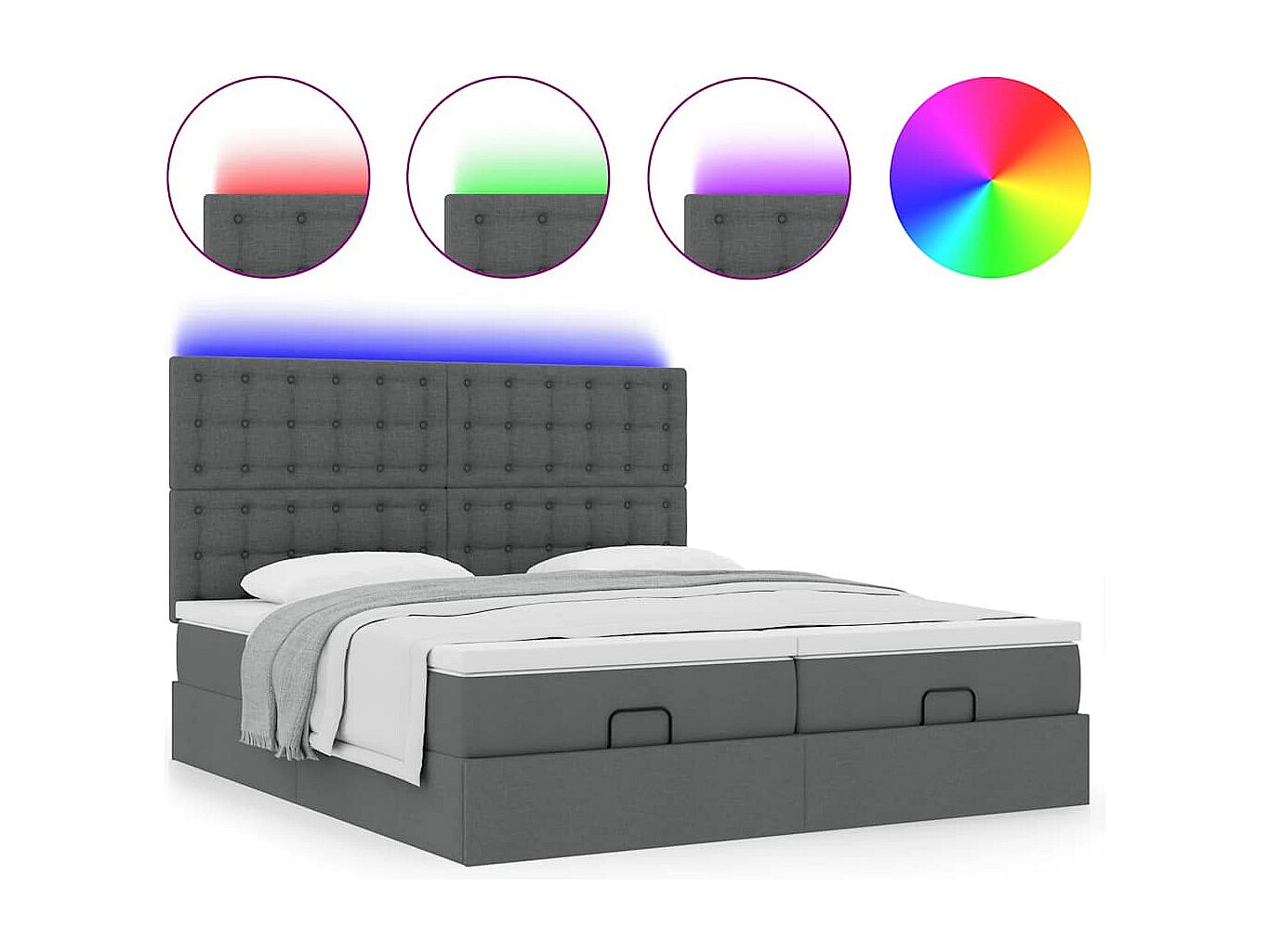 Ottoman-Bett mit Matratzen & LEDs Dunkelgrau 160x200 cm Stoff