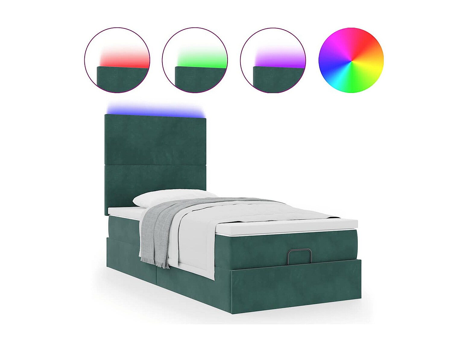 Ottoman-Bett mit Matratzen & LEDs Dunkelgrün 80x200 cm Samt