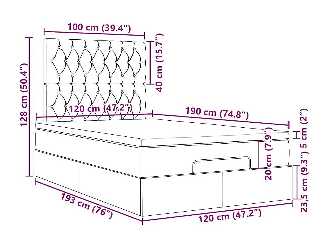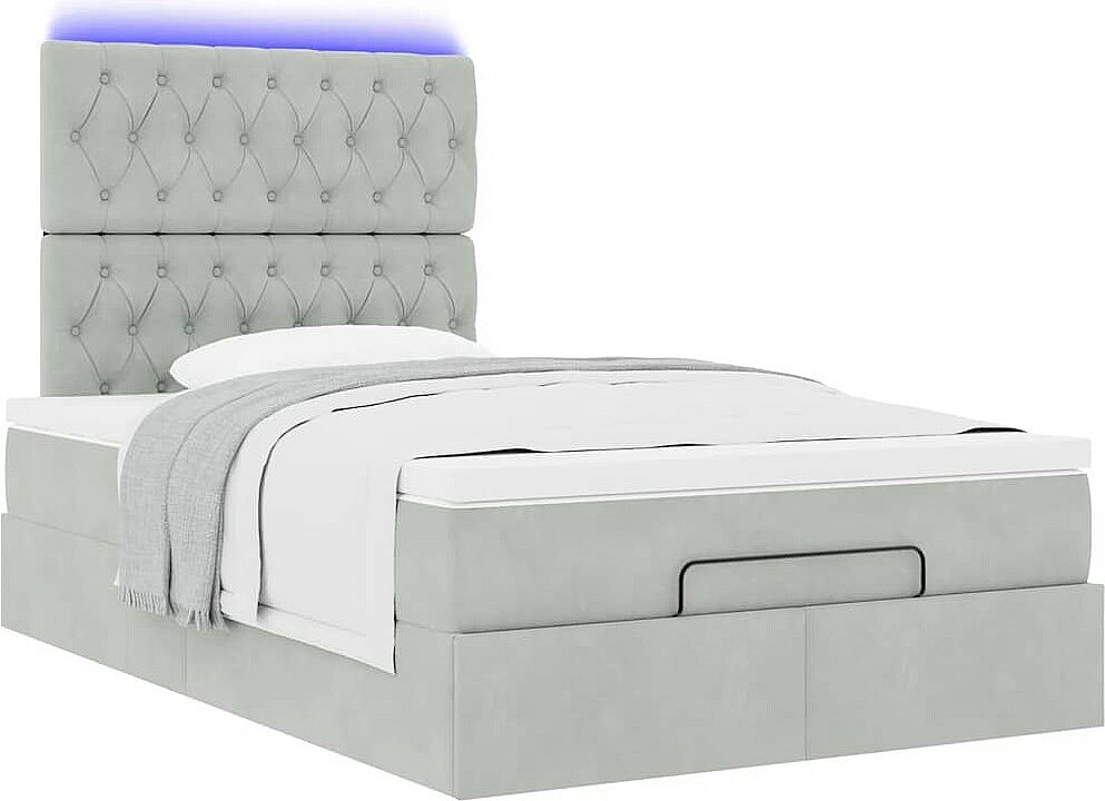 Ottoman-Bett mit Matratzen & LEDs Hellgrau 120x190 cm Samt