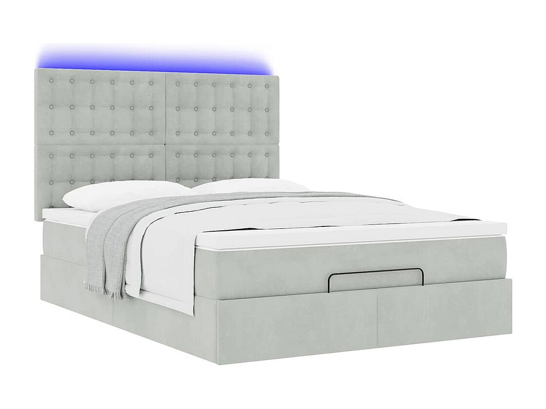 Ottoman-Bett mit Matratzen & LEDs Hellgrau 140x190 cm Samt