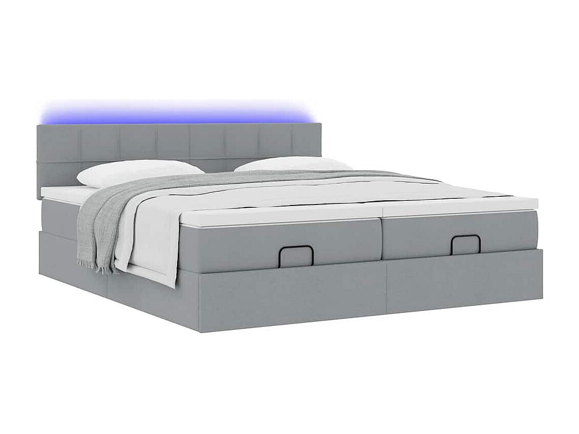 Ottoman-Bett mit Matratzen & LEDs Hellgrau 160x200 cm Stoff