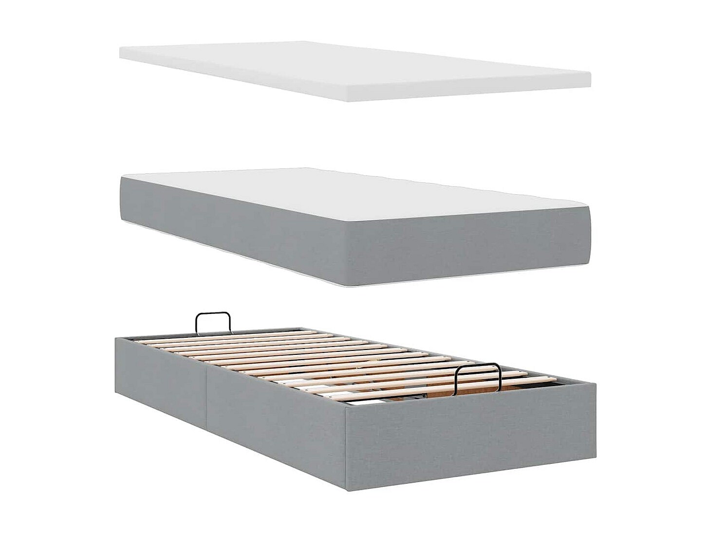 Ottoman-Bett mit Matratzen Hellgrau 160x200 cm Stoff