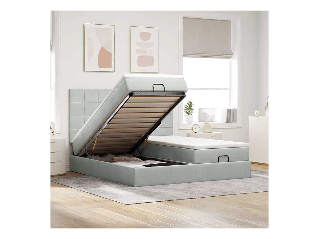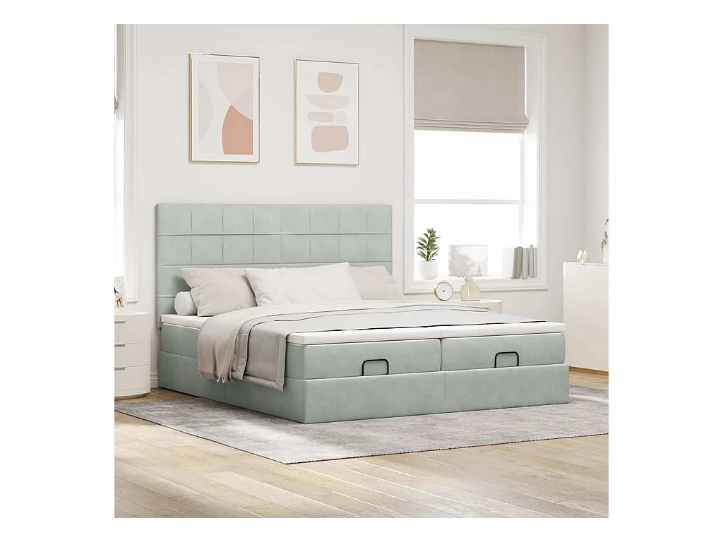Ottoman-Bett mit Matratzen Hellgrau 200x200 cm Samt