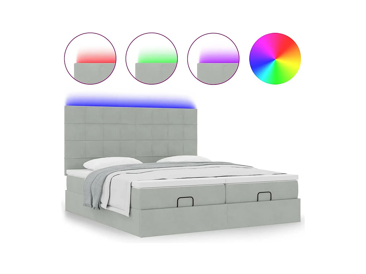 Ottoman-Bett mit Matratzen & LEDs Hellgrau 200x200 cm Samt